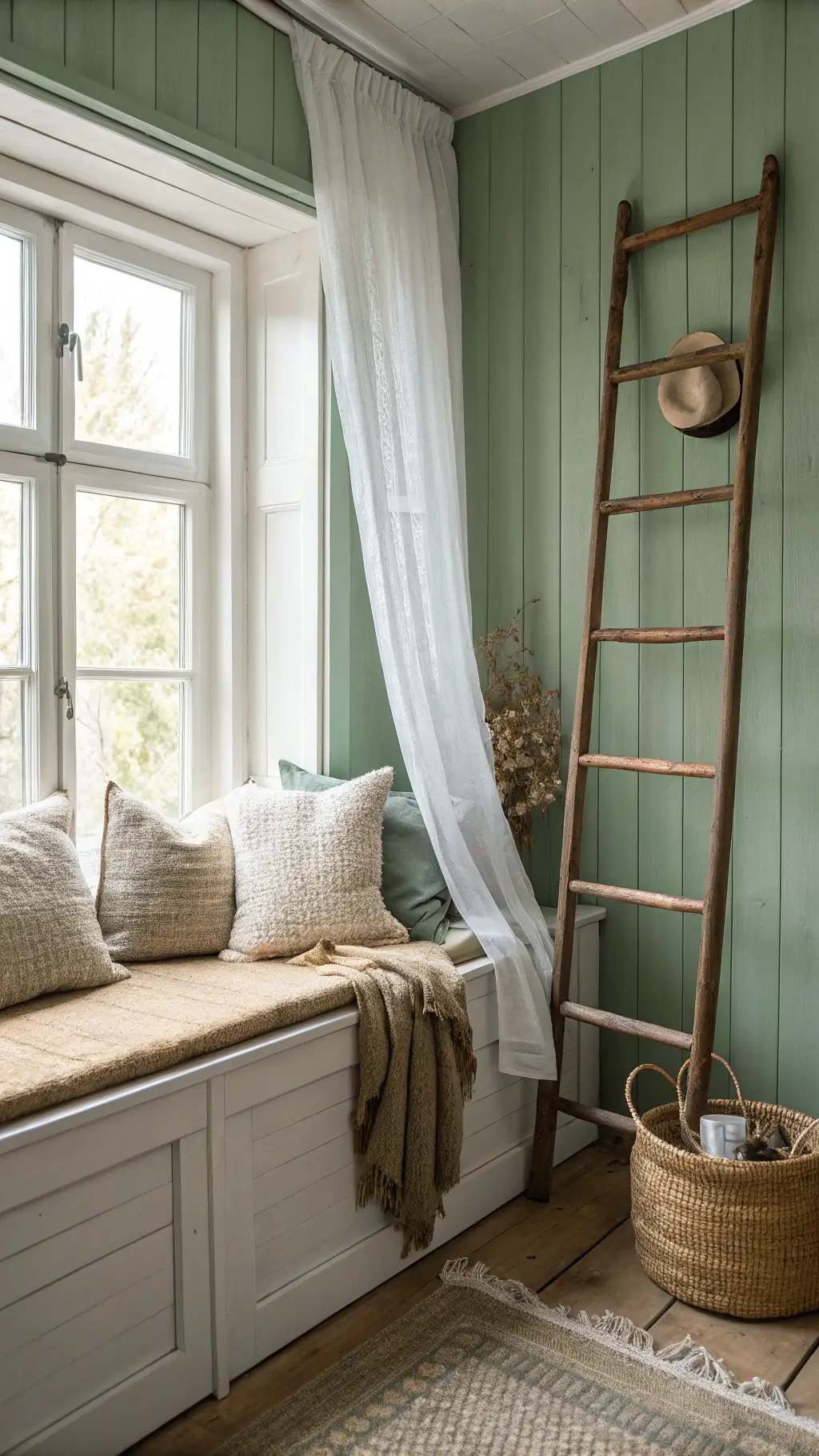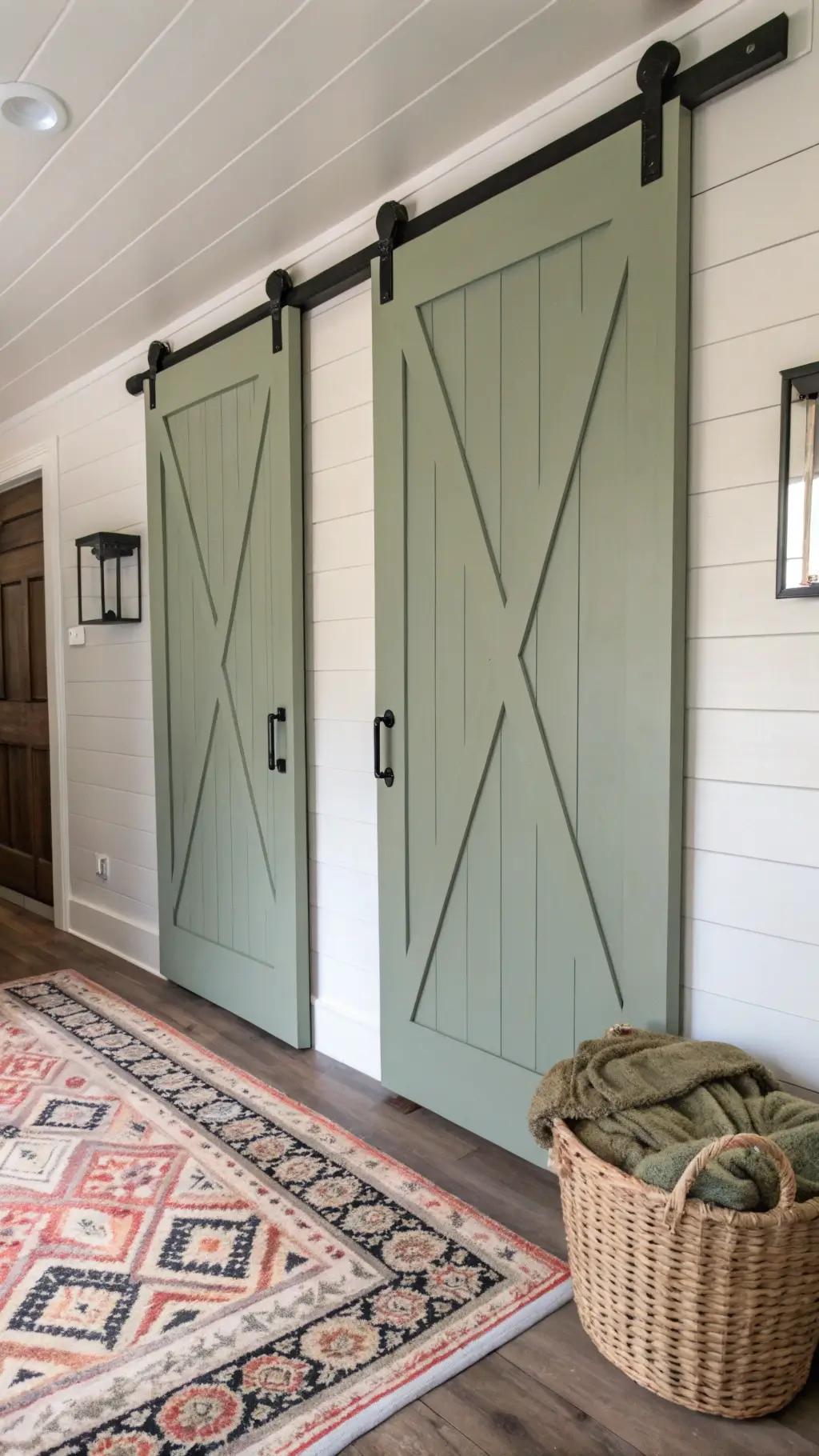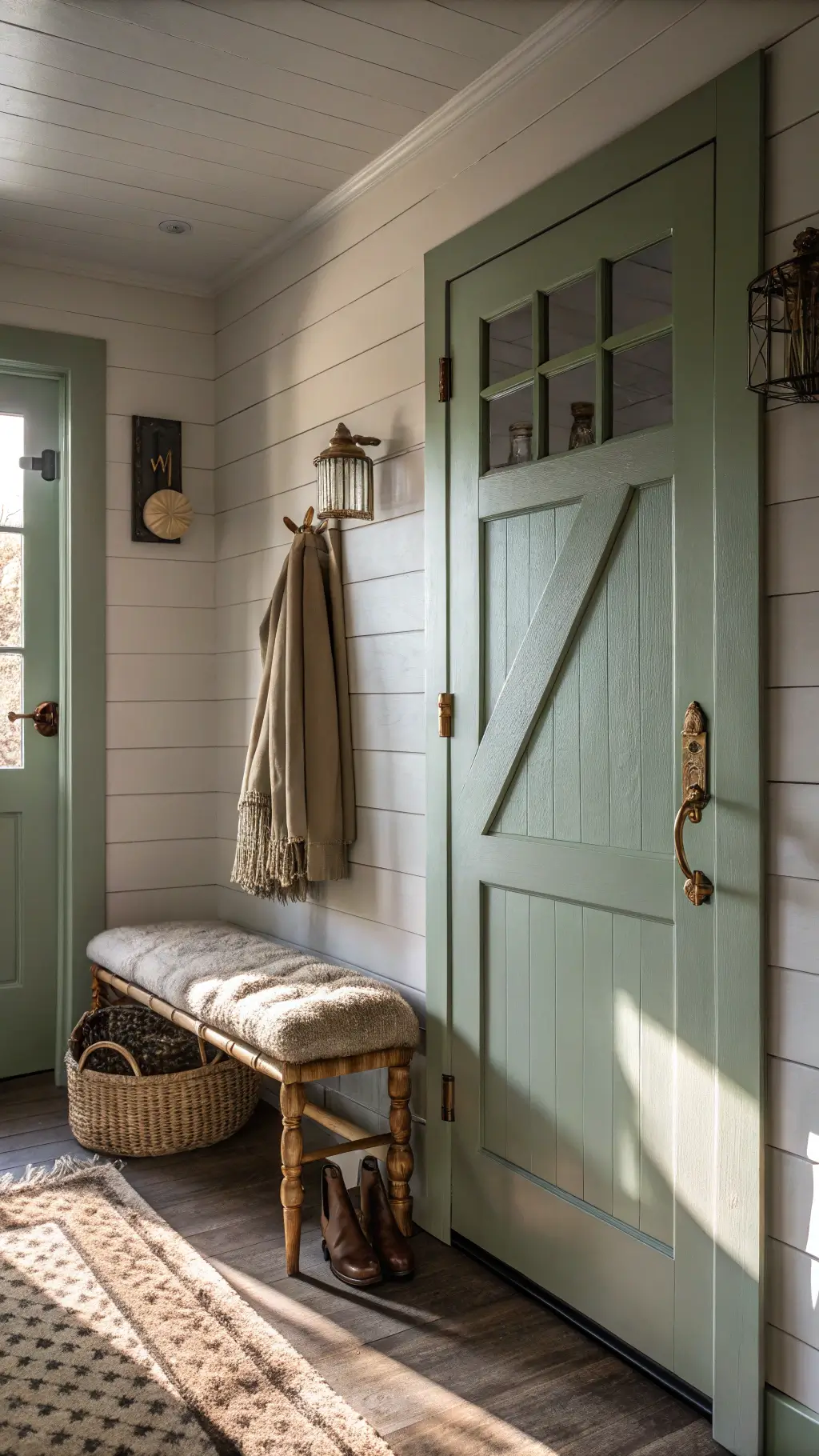 - The Hero Wall: Sage green paint or shiplap that screams “I’ve got my life together”