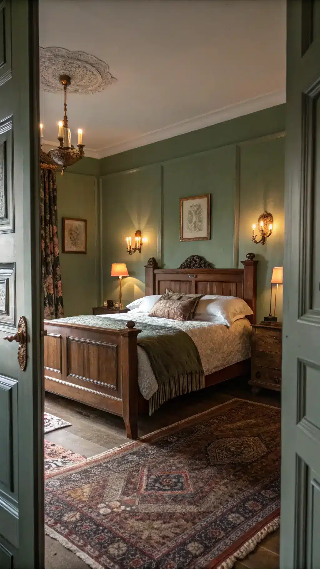 - Sage green bedroom