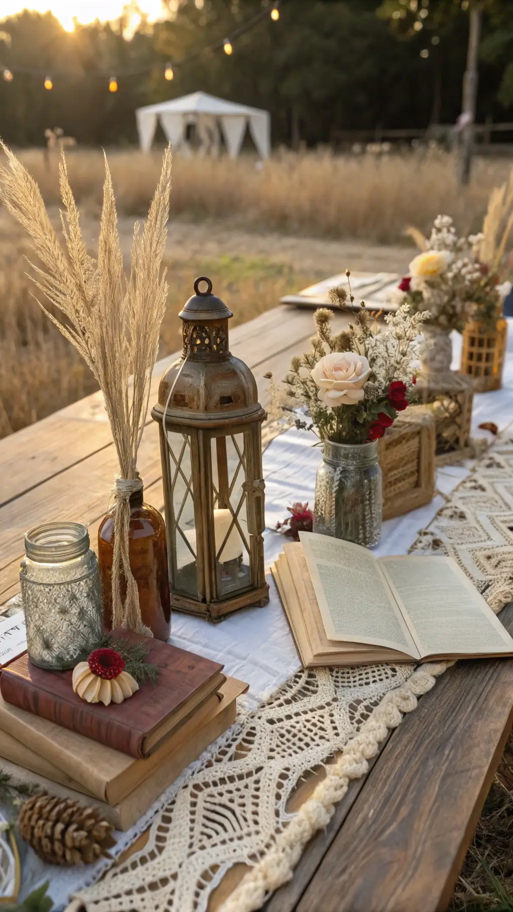 Rustic lanterns or hurricane candle holders – The mood setters. Candlelight makes everyone look better and feel more relaxed. This isn’t optional if you want that warm, inviting glow in your photos.