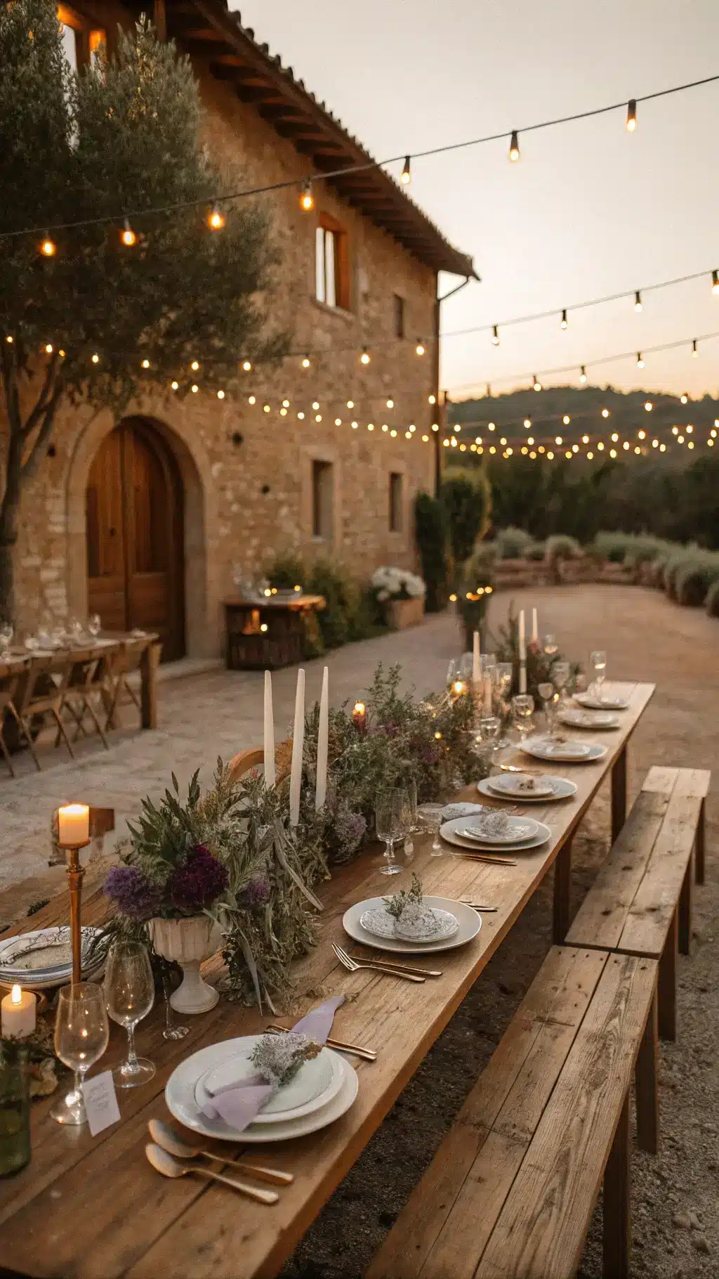 Picture this: you’re standing under a canopy of twinkling lights, surrounded by olive branches and the sweet scent of fresh lemons, while your favorite people gather around long wooden tables piled with flowers and flickering candles.