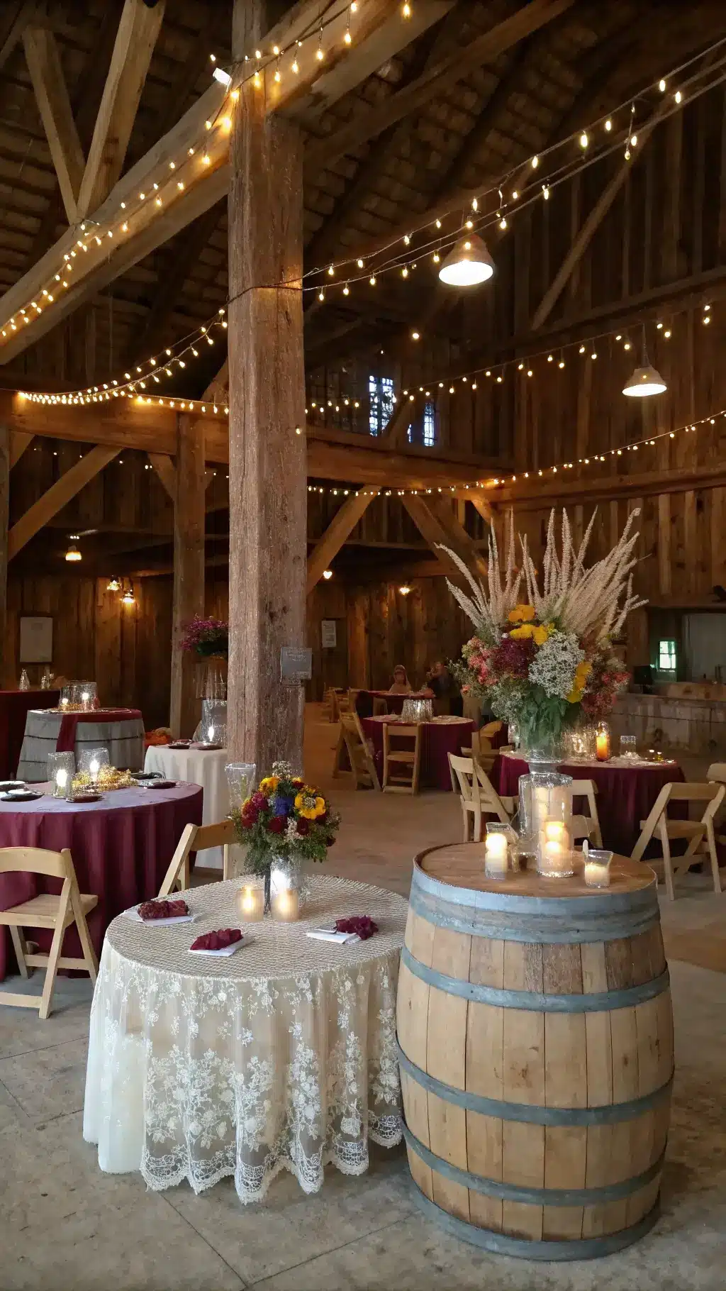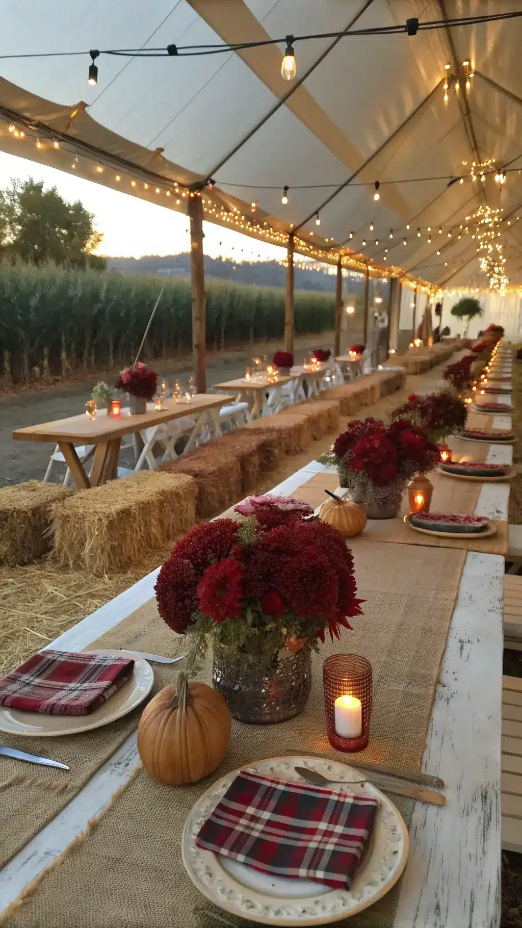 From burlap runners to string lights and vintage tableware, these elements deepen your rustic aesthetic.