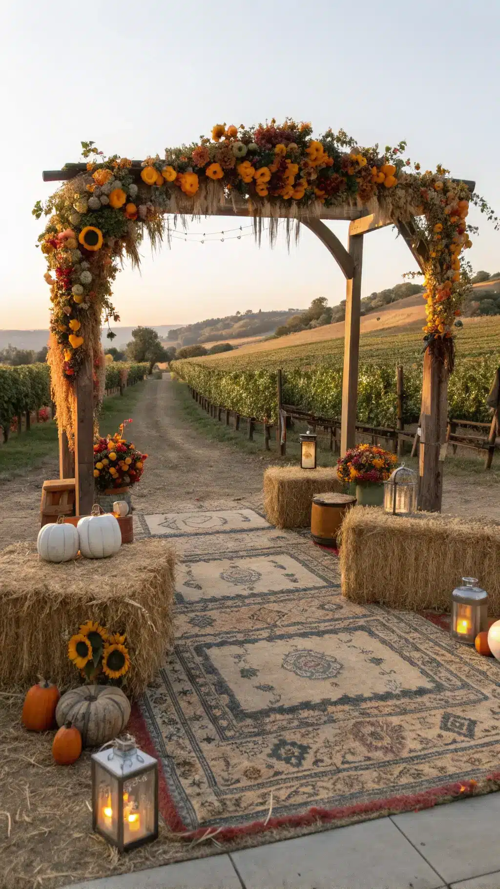 We’re going for Rustic Autumn Romance—think farmhouse charm meets harvest festival, but make it elegant.