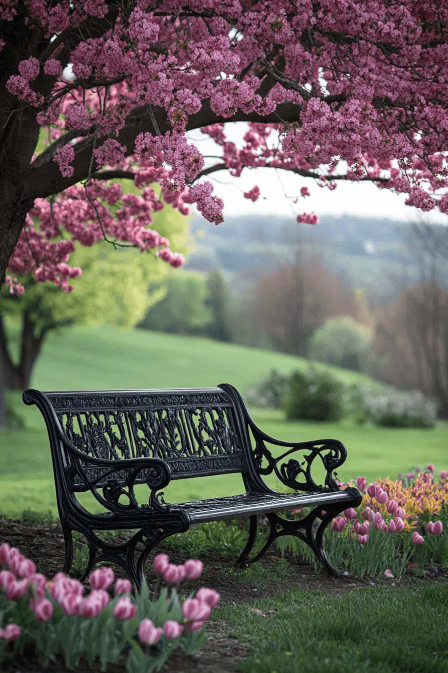 Encourage relaxation with antique yard decor ideas centered around classic garden benches. Wrought iron or aged wood designs blend beauty with comfort. Placed beneath trees or near water, they create peaceful retreats. Flowers and greenery complete the setting naturally. These benches invite lingering outdoor moments.