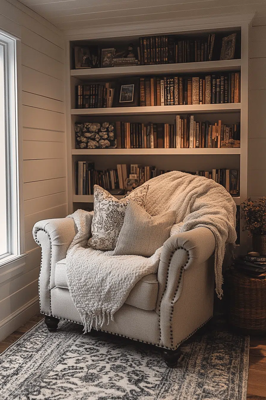 Create a tranquil retreat with basement family room ideas built around reading and quiet relaxation. Tall bookshelves, oversized chairs, and warm lighting invite peaceful moments. Floor cushions and lounge seating provide comfort for readers of every age. These basement family room ideas encourage family members to unplug and enjoy calm time together. The soothing atmosphere balances busy everyday life beautifully. Discover more calming basement family room ideas and design your peaceful hideaway.