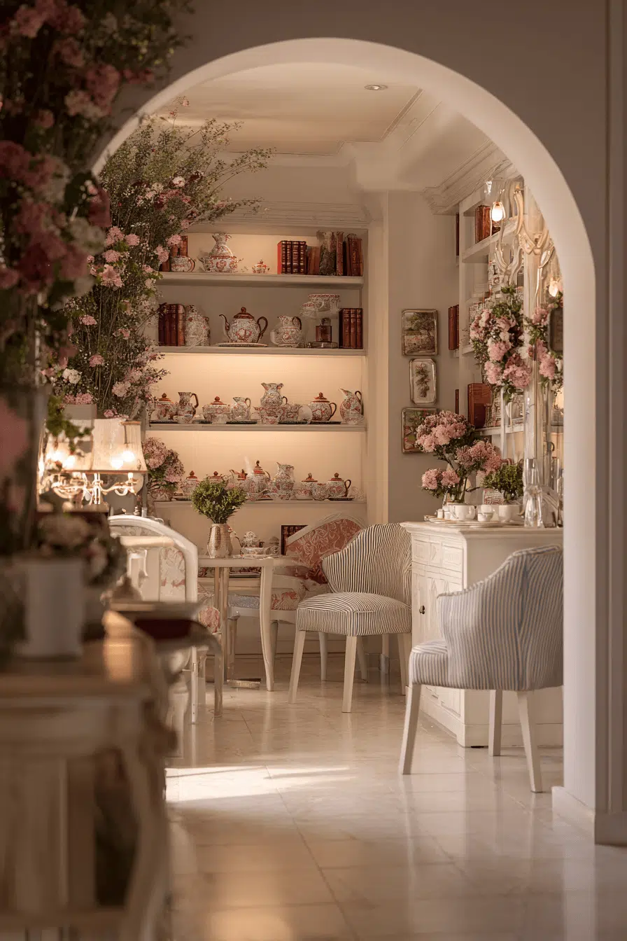 Add timeless elegance with basement family room ideas inspired by cozy tea lounges. Vintage-style furnishings, soft fabrics, and delicate patterns create a relaxing setting. The layout encourages intimate conversations and peaceful gatherings. Warm lighting enhances the refined atmosphere. These basement family room ideas bring charm and sophistication to the lower level. Discover more elegant basement family room ideas and host your next gathering in style.