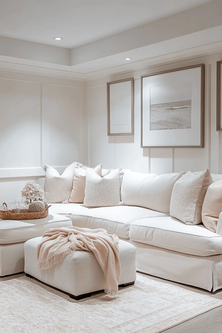 Create a calm, clutter-free retreat with basement family room ideas inspired by minimalist design. Clean furniture lines and adaptable pieces keep the layout flexible. Soft neutral tones maintain a peaceful atmosphere. The streamlined design supports relaxation, entertainment, and productivity. These basement family room ideas balance simplicity with warmth beautifully. Discover more minimalist basement family room ideas and elevate your basement with effortless style.