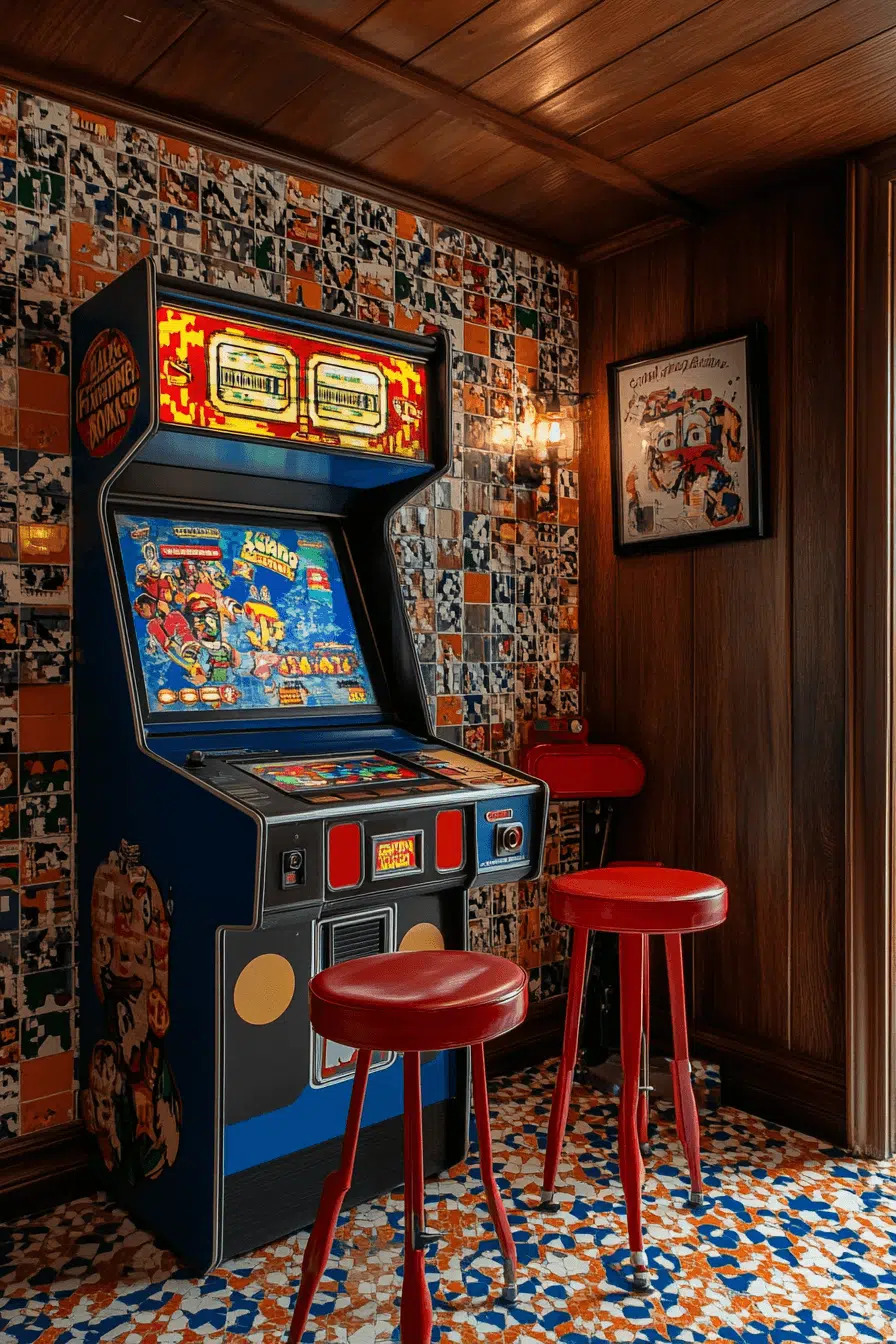 Relive classic fun with basement family room ideas inspired by retro game rooms. Vintage arcade machines, playful colors, and nostalgic décor create instant excitement. Comfortable seating encourages long gaming sessions and laughter. The design blends timeless charm with modern comfort. These basement family room ideas turn the basement into a memory-making destination. Discover more nostalgic basement family room ideas and bring retro joy to your space.