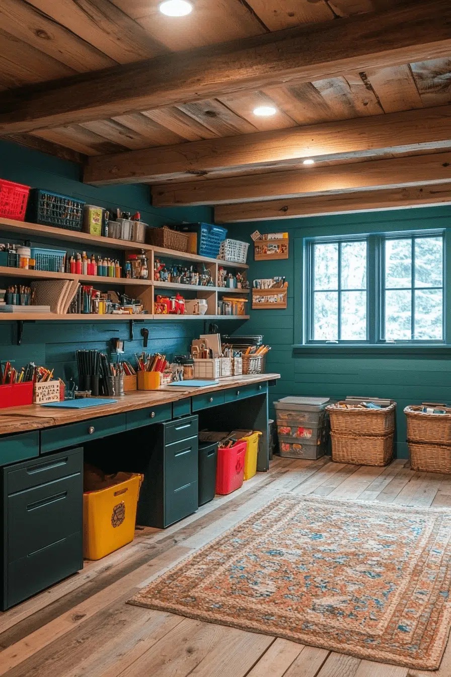 Turn your lower level into a creative workshop with basement family room ideas designed for hands-on hobbies. Spacious worktables provide room for crafting, sewing, or DIY projects. Organized shelving keeps tools and materials easy to reach. The welcoming layout encourages family members to create together. These basement family room ideas combine productivity with a relaxed family environment. Discover more inspiring basement family room ideas and start your next creative project.