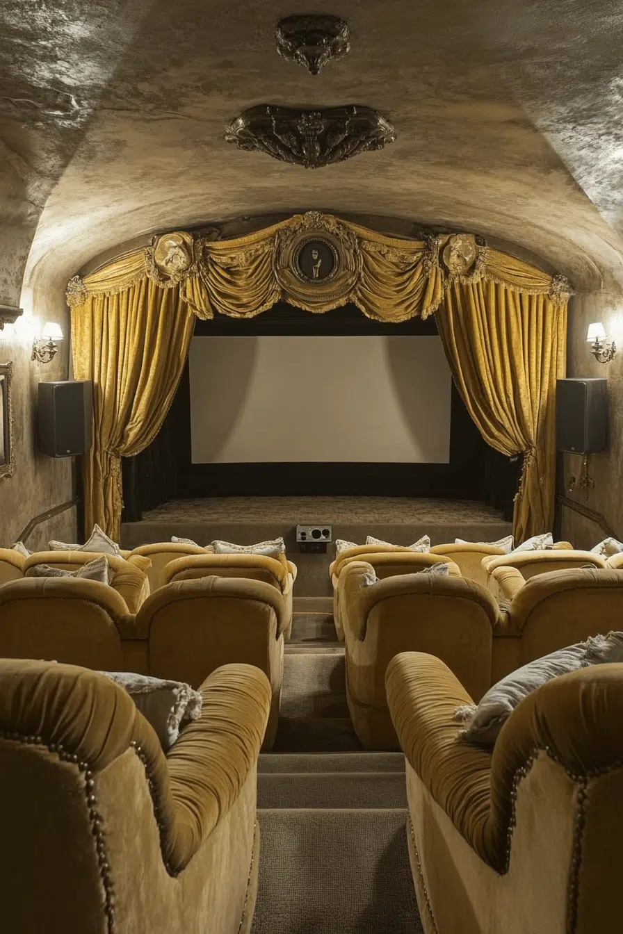 Capture Hollywood glamour with basement family room ideas inspired by vintage cinema style. Velvet seating and dramatic lighting set an elegant mood. Classic film décor adds personality and timeless charm. The immersive setting makes movie nights unforgettable. These basement family room ideas bring theatrical elegance into your home. Discover more cinematic basement family room ideas and enjoy movie nights in style.