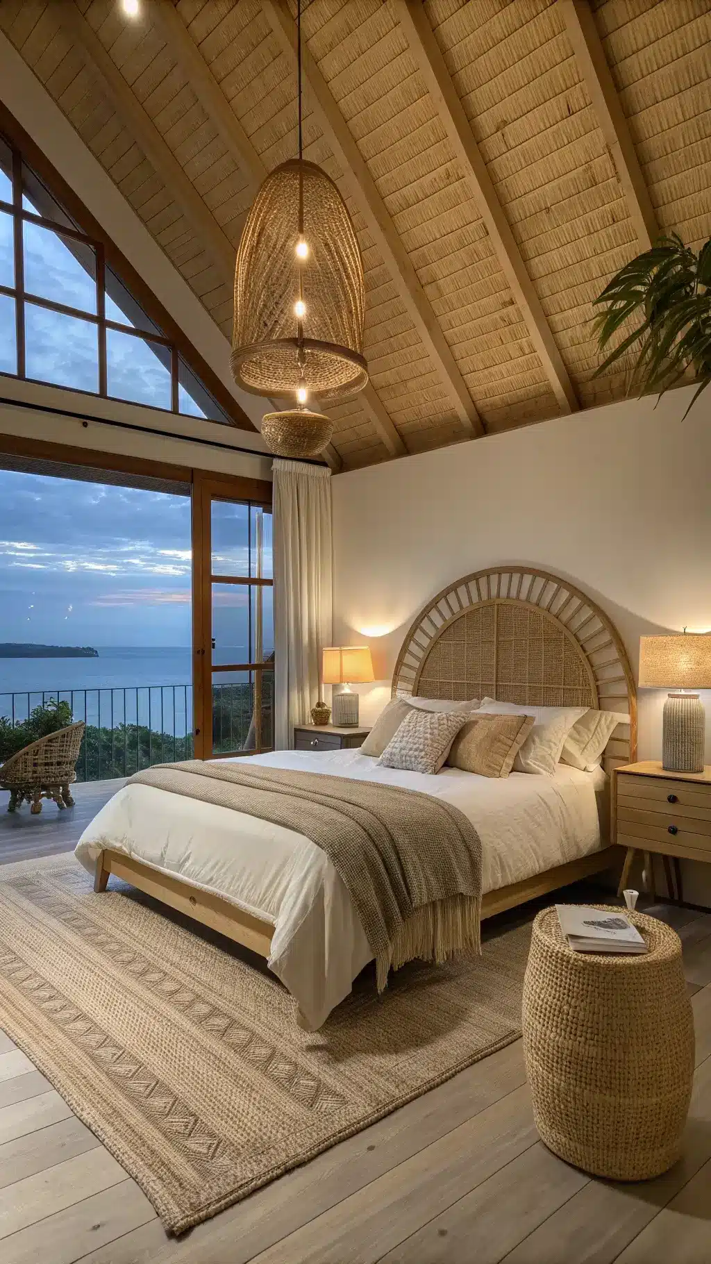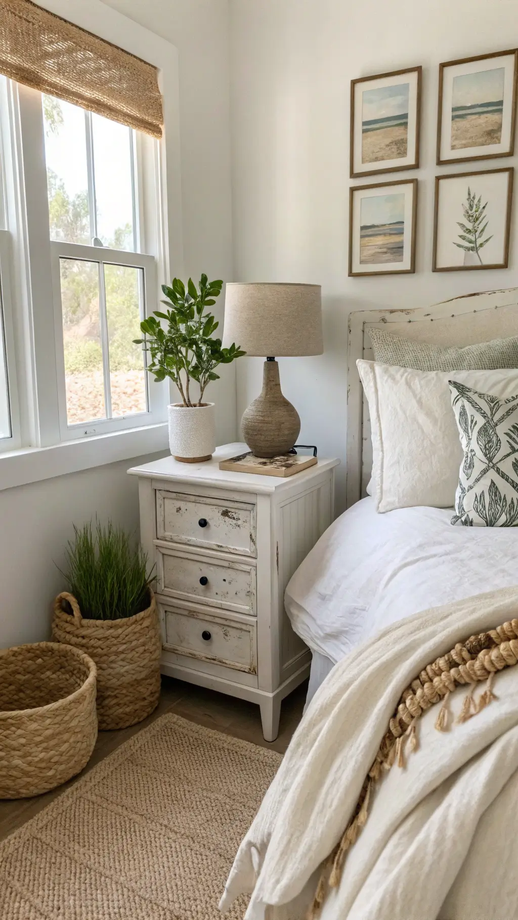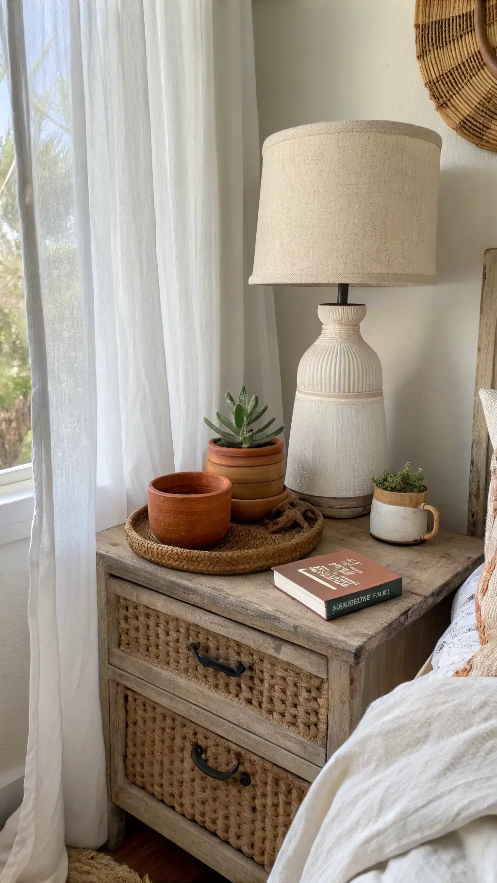 - Natural textures that feel intentional but not staged (rattan, jute, woven elements)