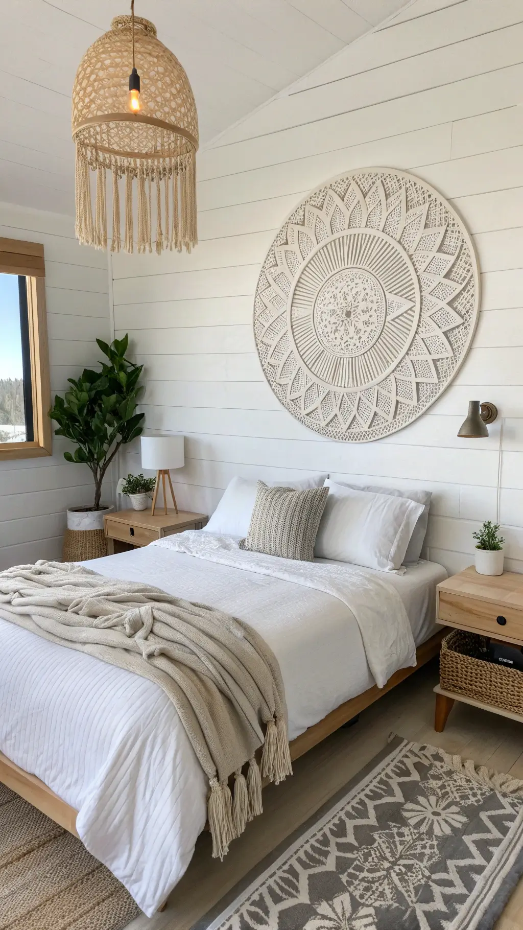 Add woven wall sconces instead of typical bedside lamps.