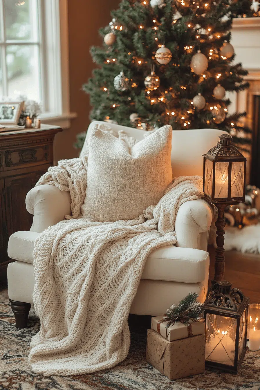 Vintage charm creates a heartwarming storytelling nook with a nostalgic christmas aesthetic. Antique lanterns, classic books, and warm lighting set the perfect holiday mood. Traditional décor brings beloved memories into the present. It’s an inviting corner for reading and bonding.