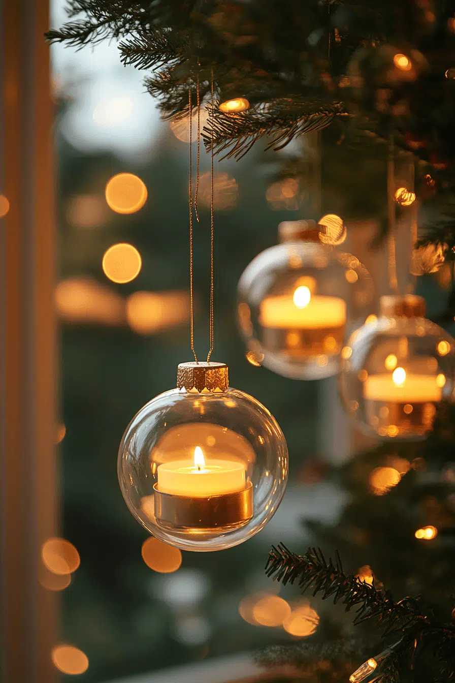 Ornament-shaped candle holders create whimsical holiday sparkle with every flicker. Their glowing interiors make the designs feel nostalgic and joyful. These christmas candle decor ideas add personality to shelves, tables, or mantels. They’re perfect for playful or family-friendly themes.