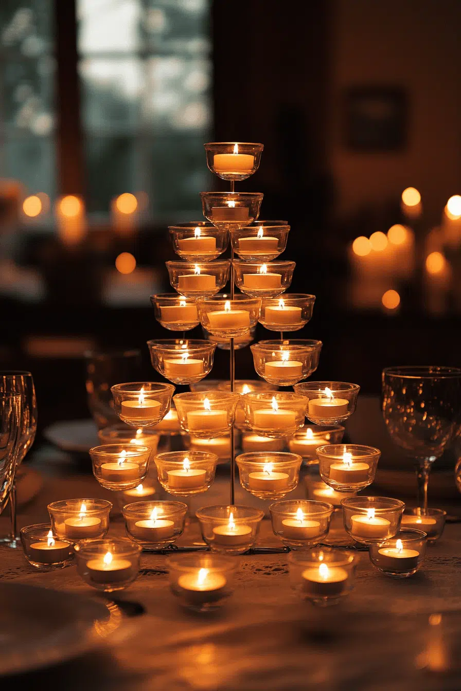 Candles arranged in layered trays or tree-like shapes create height and visual dimension in your decor. Their varied glow brings life and movement to the display. These christmas candle decor ideas are perfect for bold centerpieces or themed tabletops. They’re eye-catching and easy to personalize.