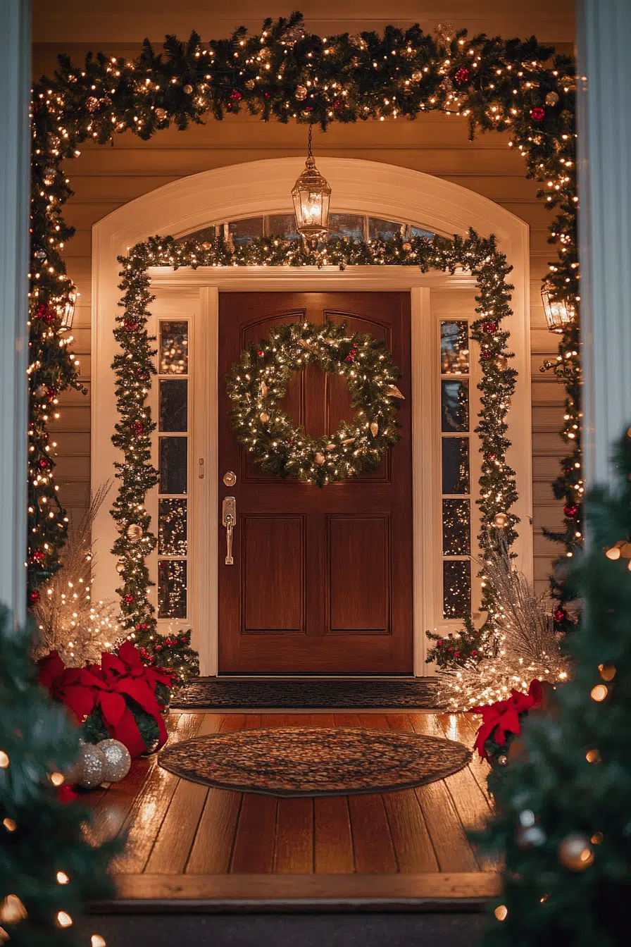 Make a bold first impression with Christmas decorating ideas that fill your entryway with festive warmth. Adorn your doorway with lush garlands, twinkling lights, and an elegant wreath that glows under soft illumination. Subtle metallic accents add a touch of glamor without overwhelming the space. Every guest will feel the magic before they step inside. Start your holiday story at the front door and let joy greet everyone who visits.