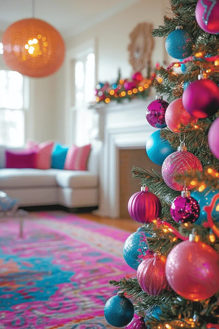 Make bold statements with Christmas decorating ideas that celebrate color. Jewel tones, hot pinks, and emerald greens come alive in contrast with soft neutrals. Metallic finishes amplify their sparkle. The result is vibrant and joyful. Add fearless color to your decor and make your home burst with festive confidence.