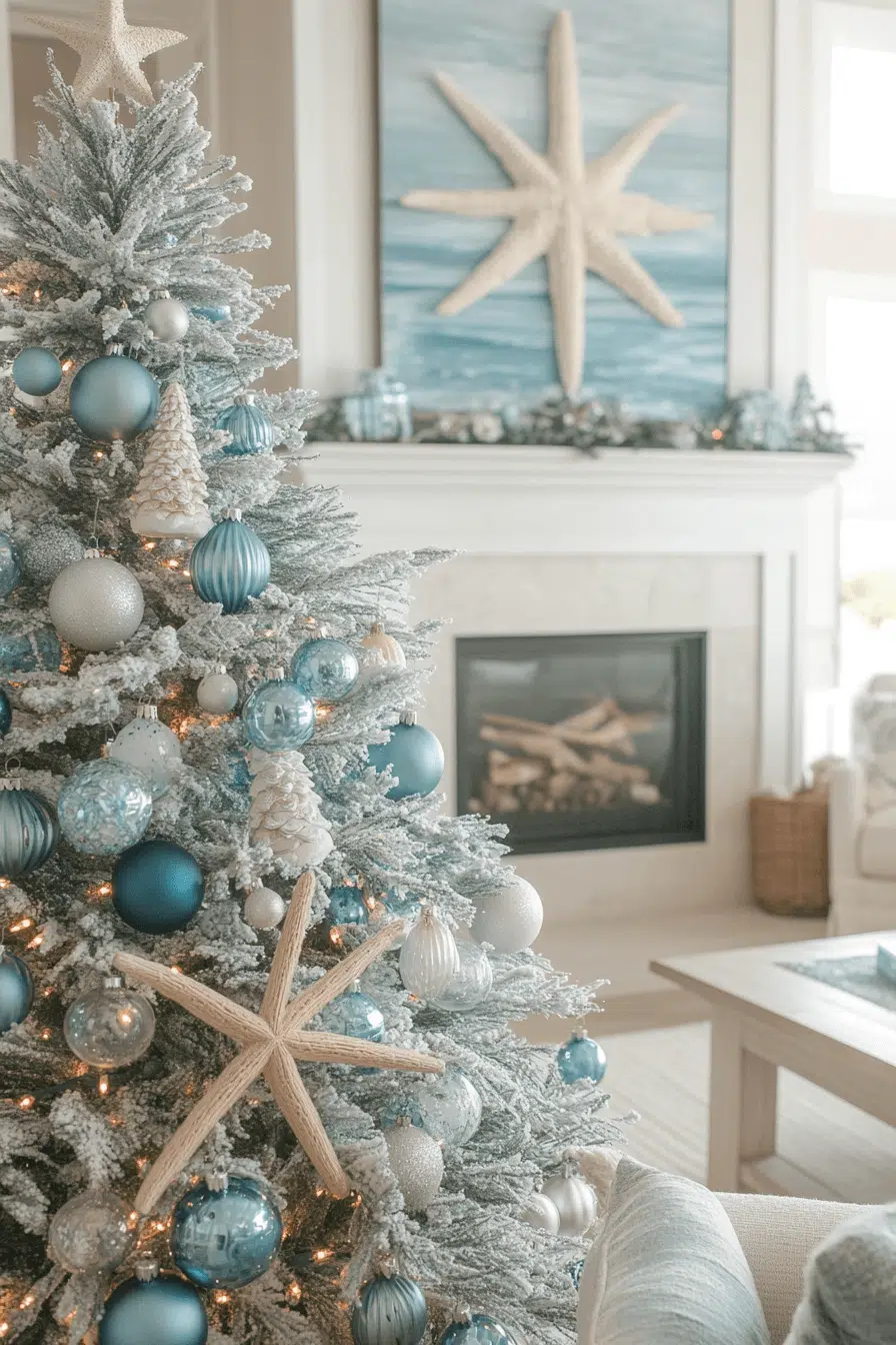 Bring coastal tranquility indoors with Christmas decorating ideas that blend beachy calm and winter charm. Sea-glass ornaments, driftwood garlands, and white twinkle lights evoke seaside serenity. It’s fresh, light, and timeless. Every detail feels breezy and joyful. Let ocean-inspired holiday decor wash your home in calm celebration.