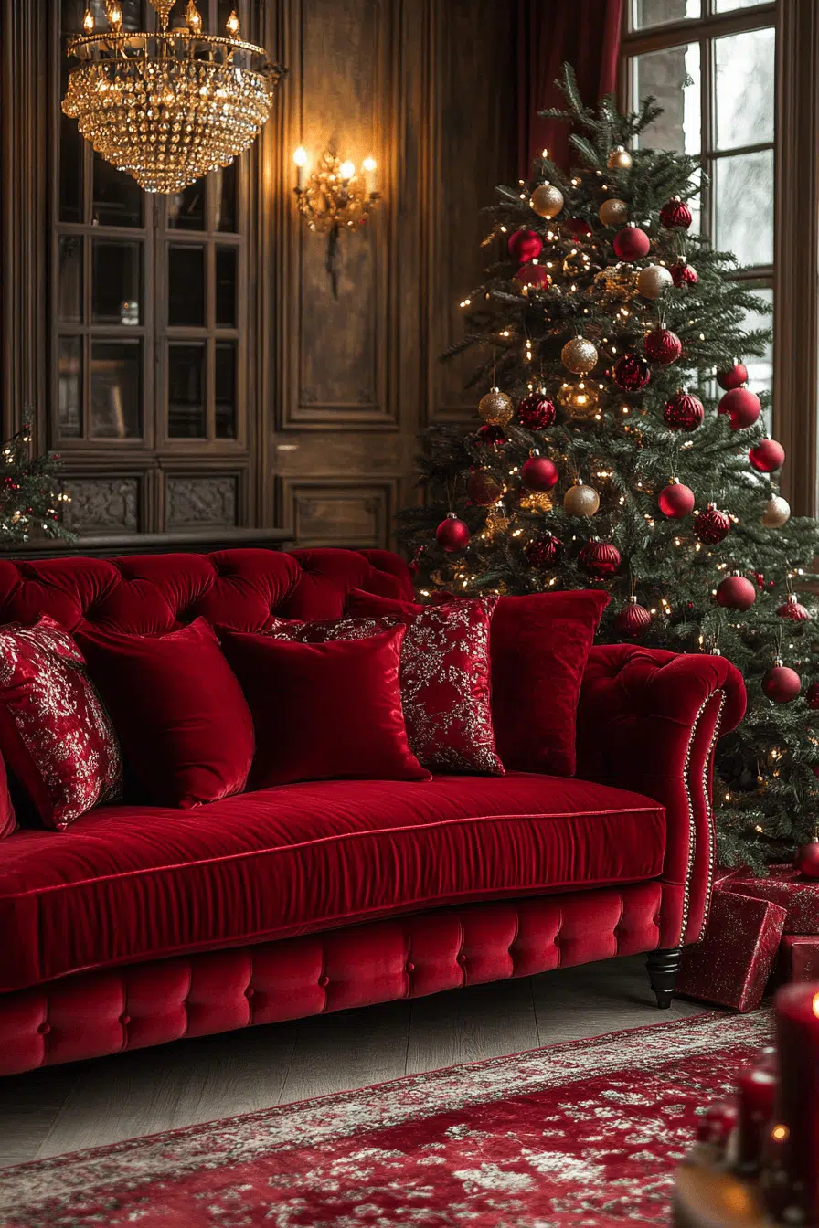 Upgrade your movie room with Christmas decorating ideas that make it shine like Hollywood glam. Rich fabrics, metallic details, and velvet cushions create a plush cinematic vibe. Keep the lighting warm and low for perfect ambience. It’s comfort meets sparkle. Make every film night a red-carpet holiday experience.