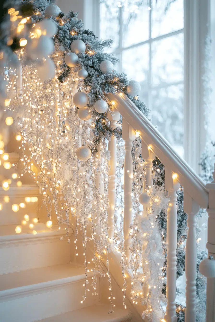 Add a fairytale touch to your stairs with Christmas decorating ideas that make every step shimmer. Drape garlands from the banister, weave in tiny lights, and top it off with satin bows for balance. Each twinkle leads guests upward with charm. The look feels whimsical yet timeless. Turn your staircase into a magical path that celebrates the beauty of the season.