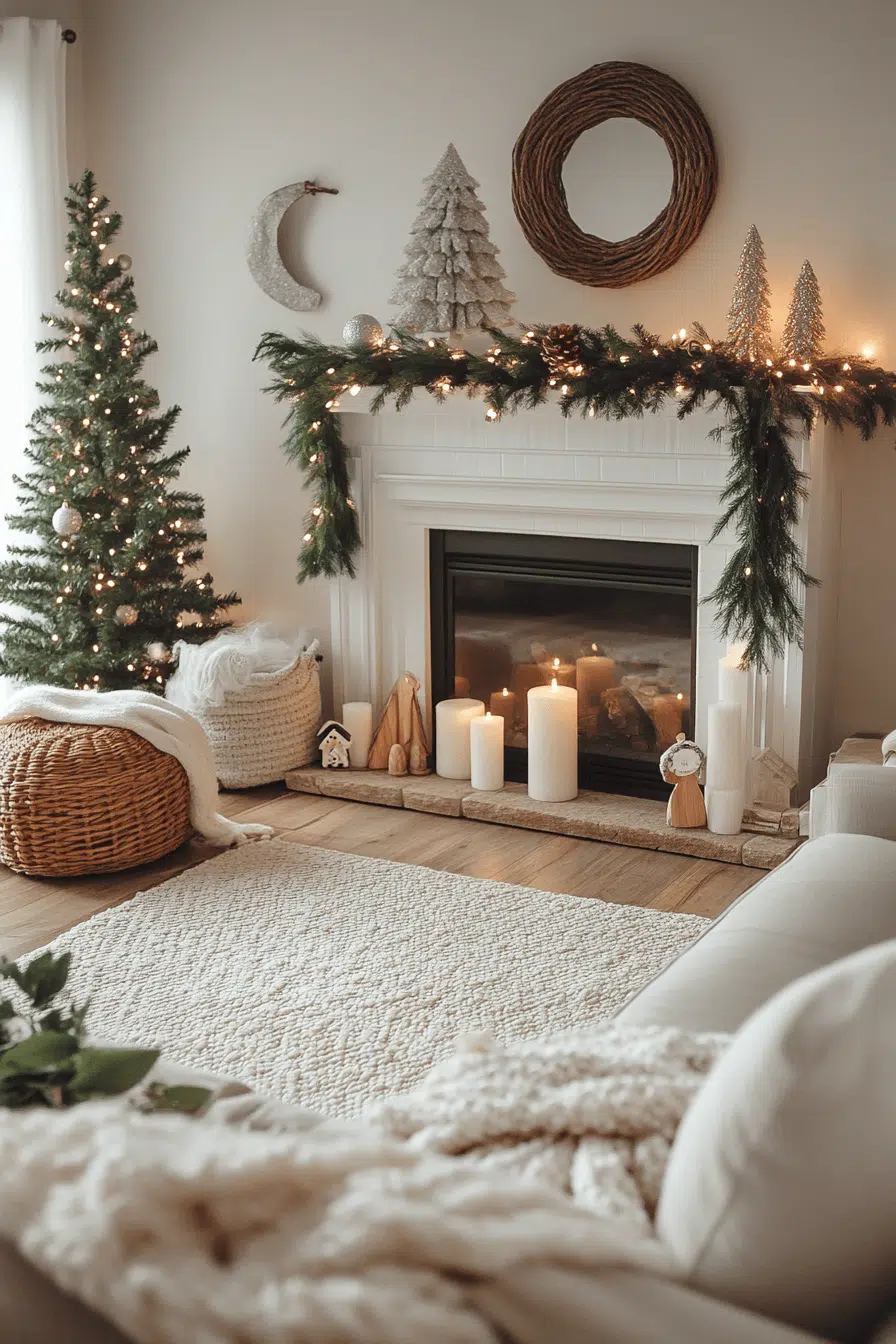 Light woods, soft neutrals, and clean lines define this Scandinavian-inspired Christmas mantel decor. Each element reflects balance and calm through minimal yet meaningful design. Touches of greenery add natural freshness to the serene palette. It’s simplicity at its most beautiful. Invite Nordic peace into your home and let your mantel breathe with effortless style.