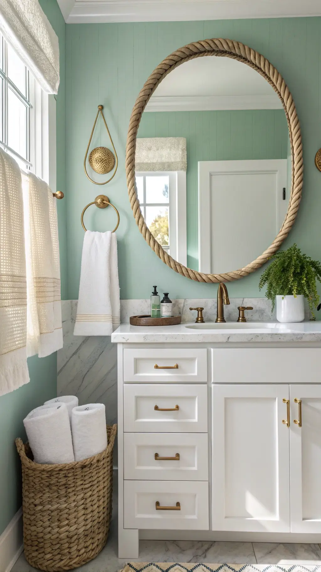 Forget basic rectangle mirrors from 1987. I grabbed a large round mirror with a rope frame, and people literally comment on it every single time they come over.