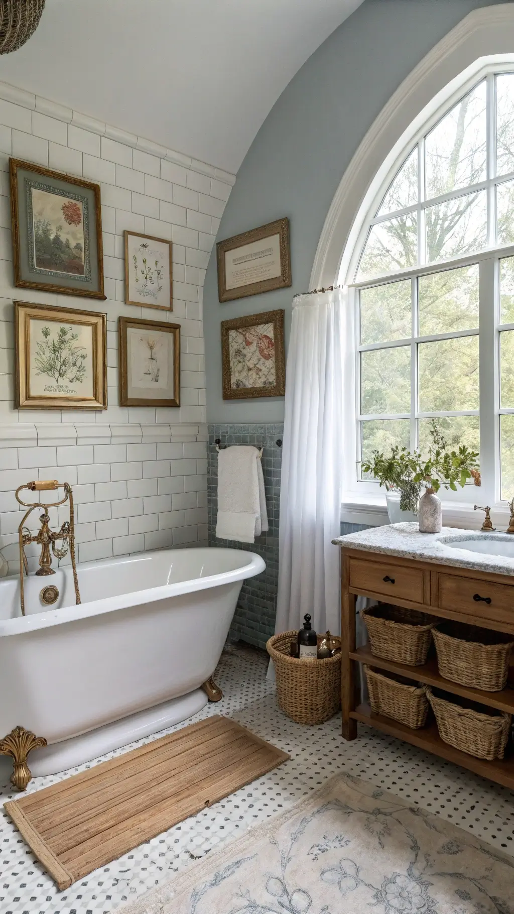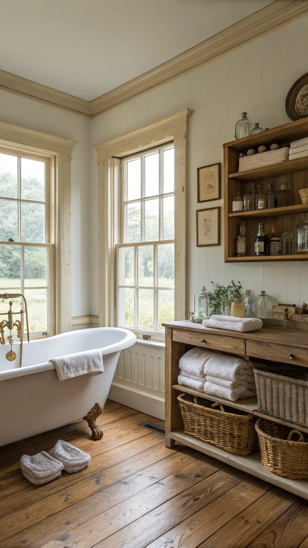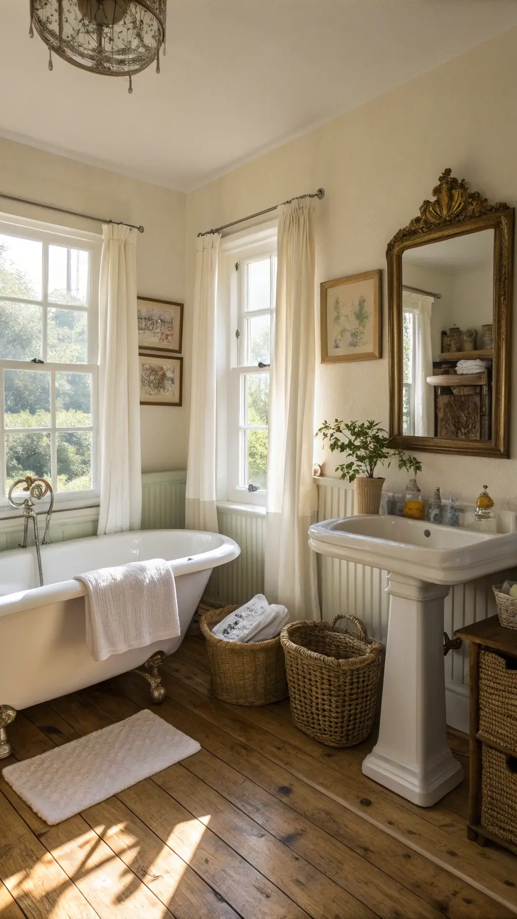 The soft cream walls, the vintage mirror that probably had a thousand stories to tell, and that gorgeous clawfoot tub sitting there like it owned the place – everything just worked together so beautifully.