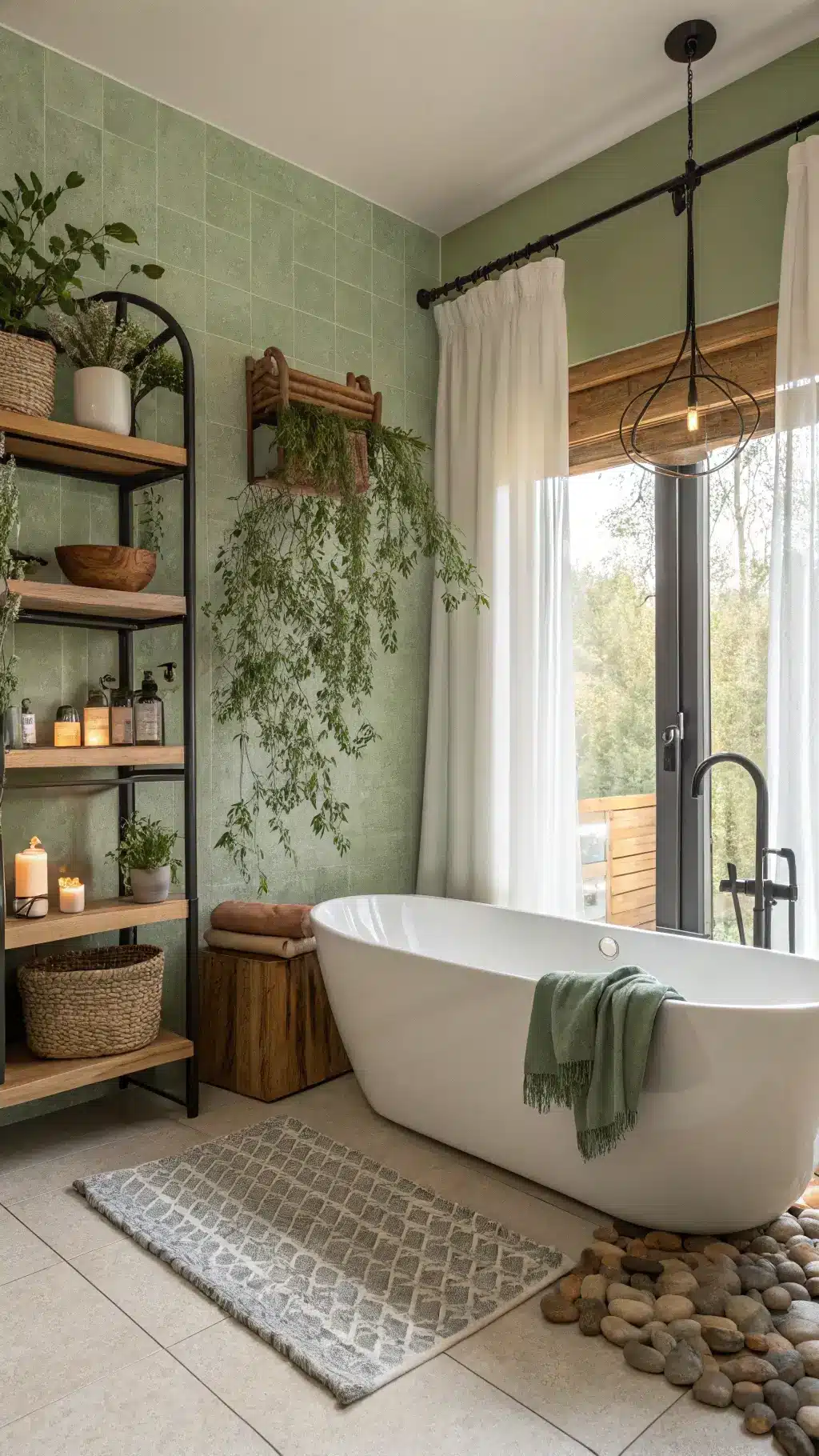 Waterproof LED candles around the tub, a small accent lamp on a shelf—these add warmth without being essential.