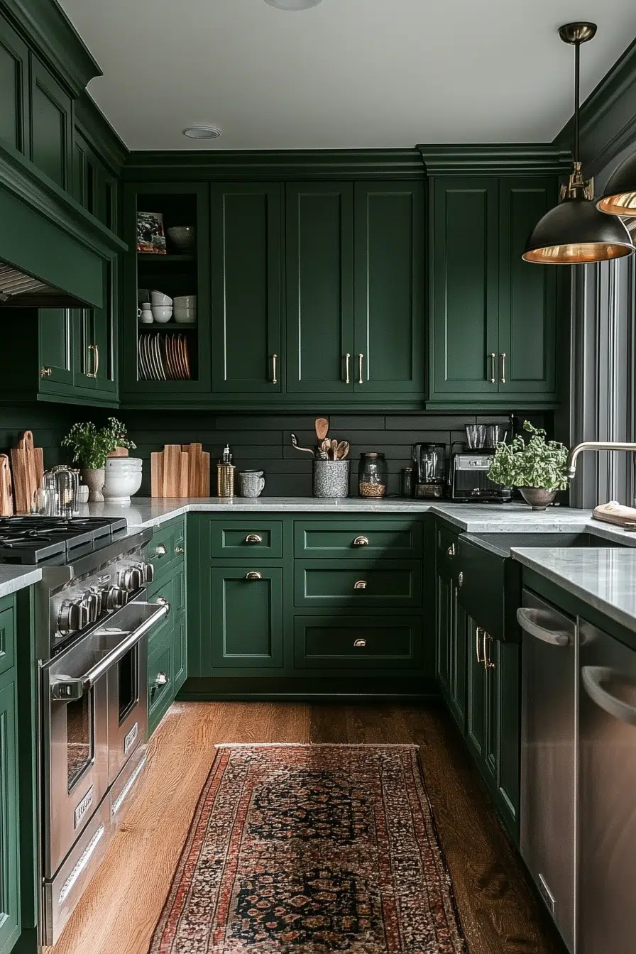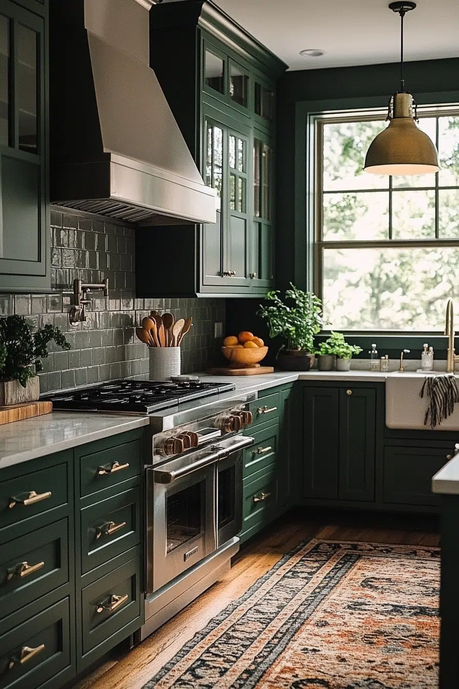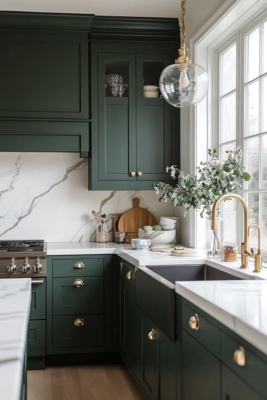 Dark green kitchen cabinets aren’t just a trend. They’re a lifestyle. A mood. A statement that says, “Yeah, I know what’s up in design.”