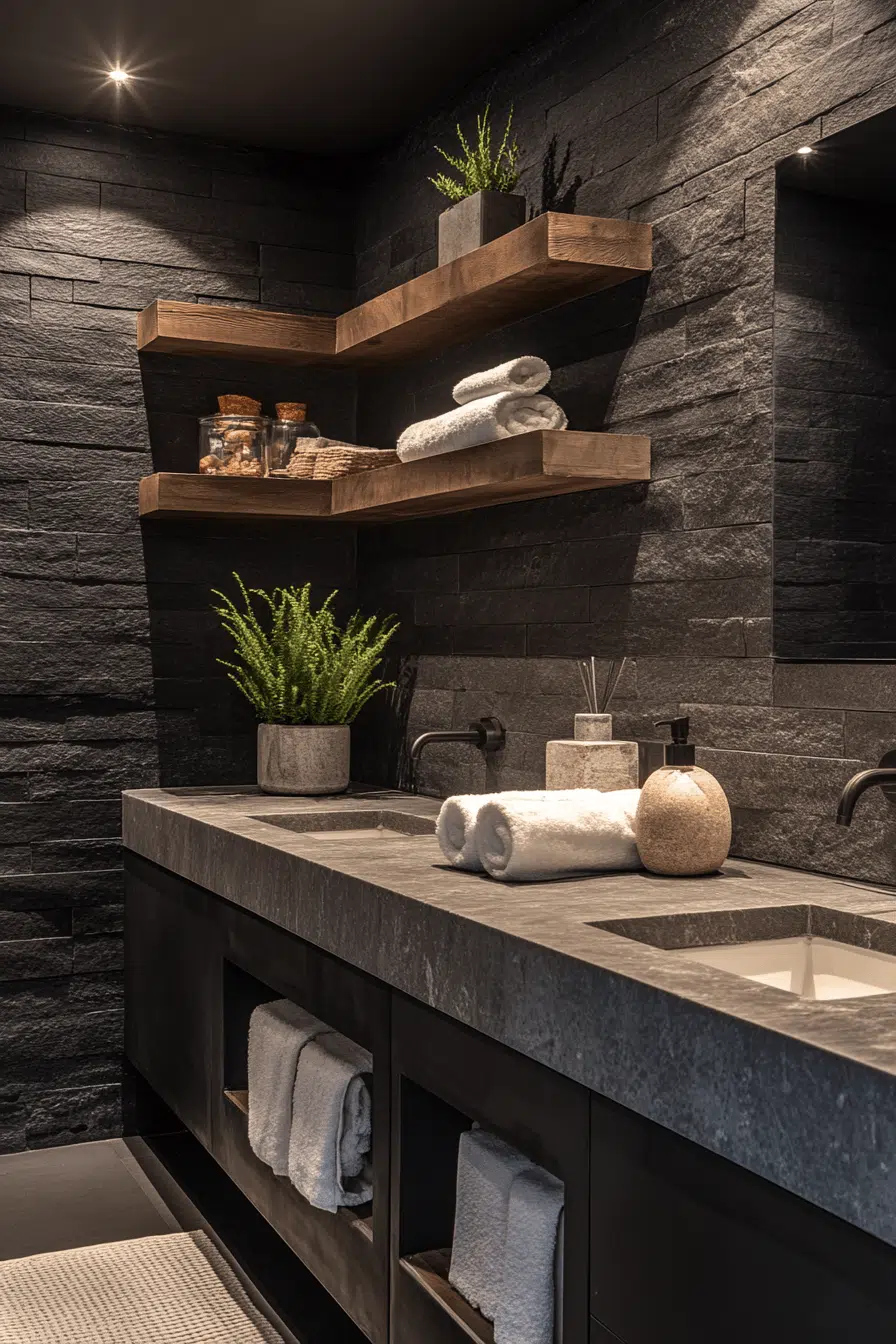 12. Layered Graphite Bathroom Style