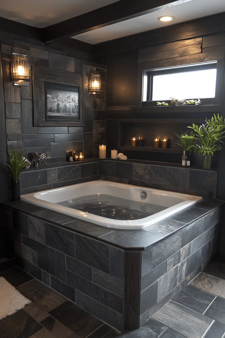 19. Immersive Slate Bathroom Style