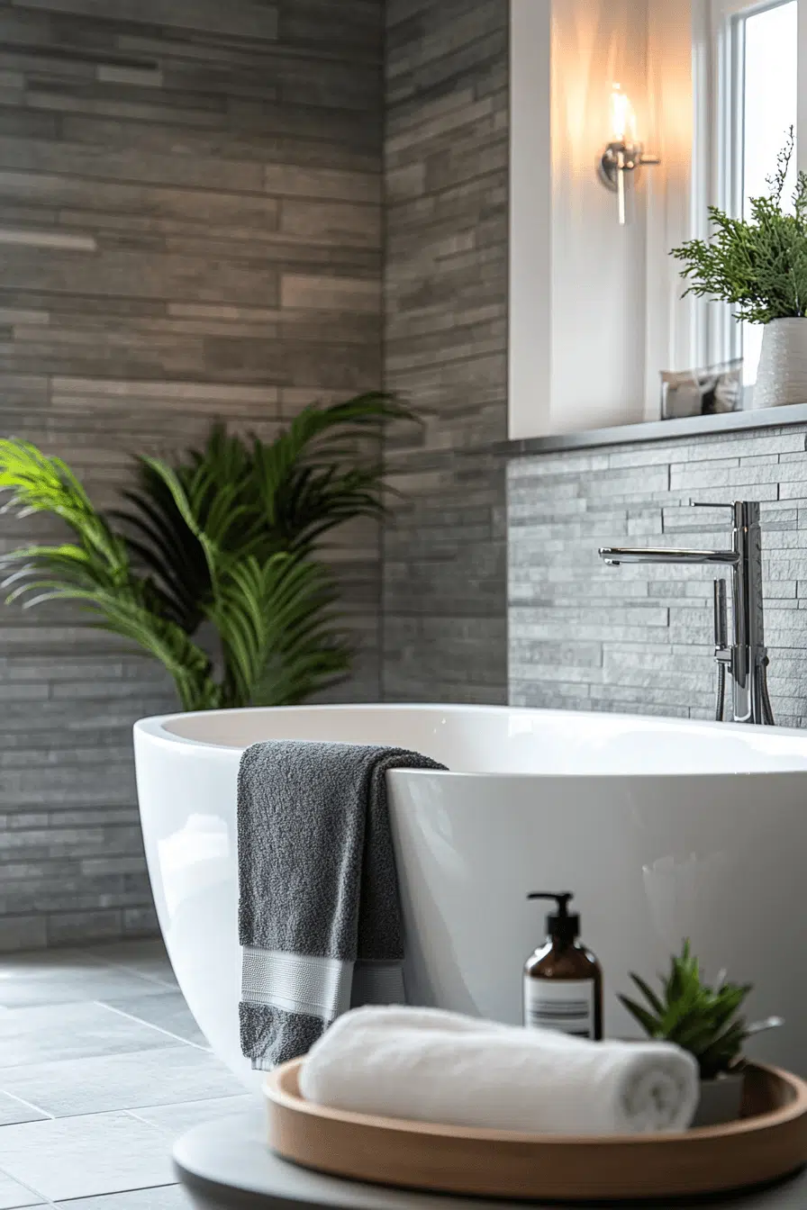 22. Layered Grey Bathroom Harmony