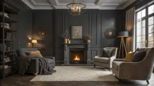 Deep charcoal tones create a grounding effect in a dark grey bathroom that feels calm and intentional. Lighter accents add contrast without overpowering the design. Soft lighting enhances the atmosphere. Natural accessories bring warmth and texture. The layout feels uncluttered and peaceful. Transform your dark grey bathroom into a calming escape!