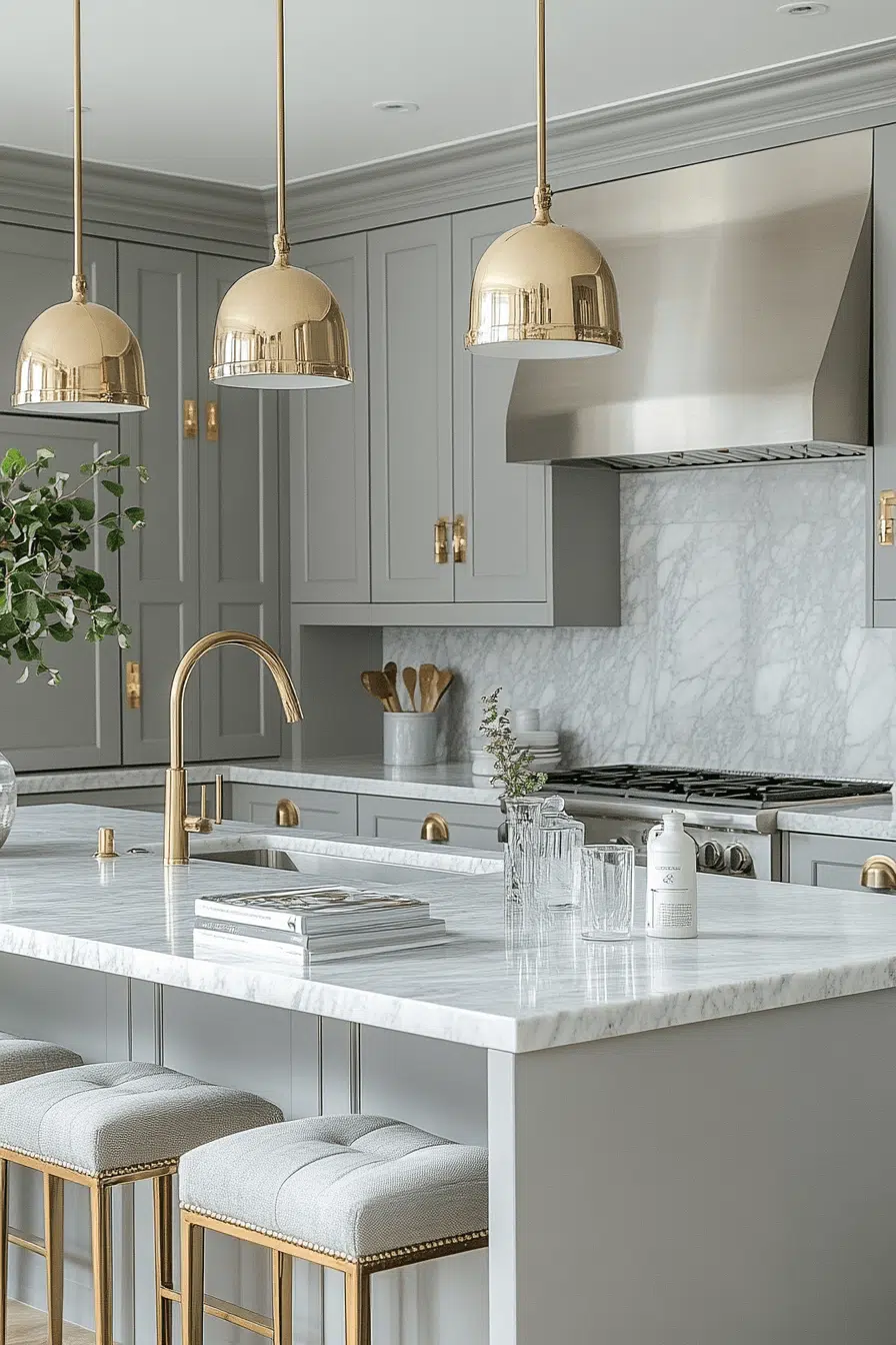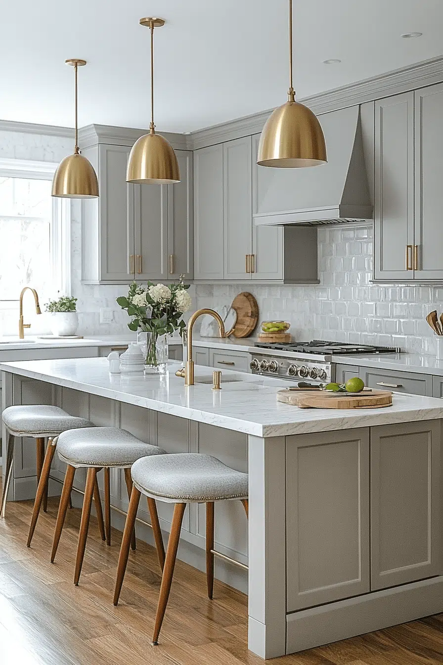 Layered lighting transforms a dark grey kitchen into a bright and inviting space full of depth. Under-cabinet lighting highlights the richness of the cabinetry. Pendant fixtures add sculptural interest and warmth. Reflective surfaces enhance the overall brightness. The result feels luminous yet cozy. Illuminate your dark grey kitchen with layered lighting ideas!