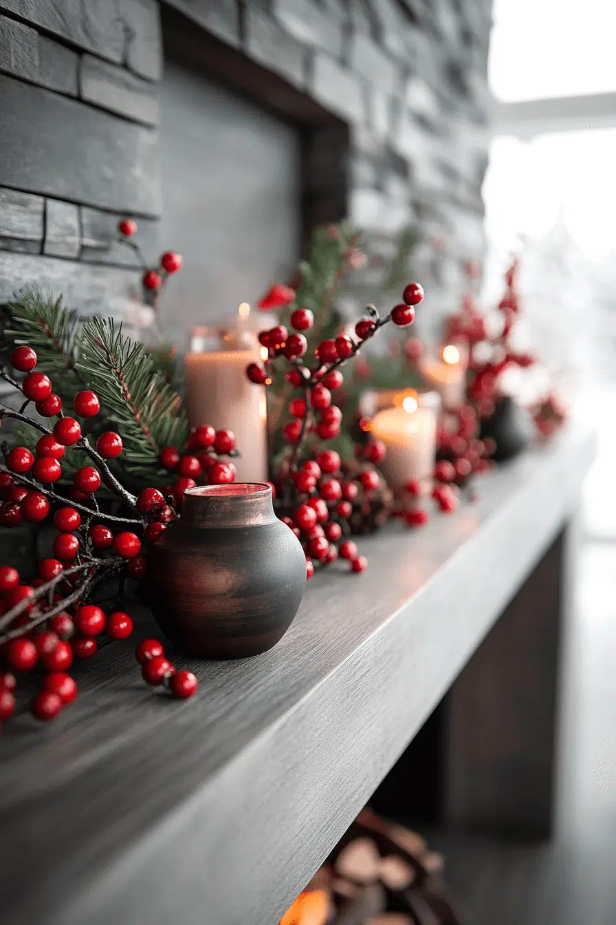25. Berry-Bright Mantel Magic