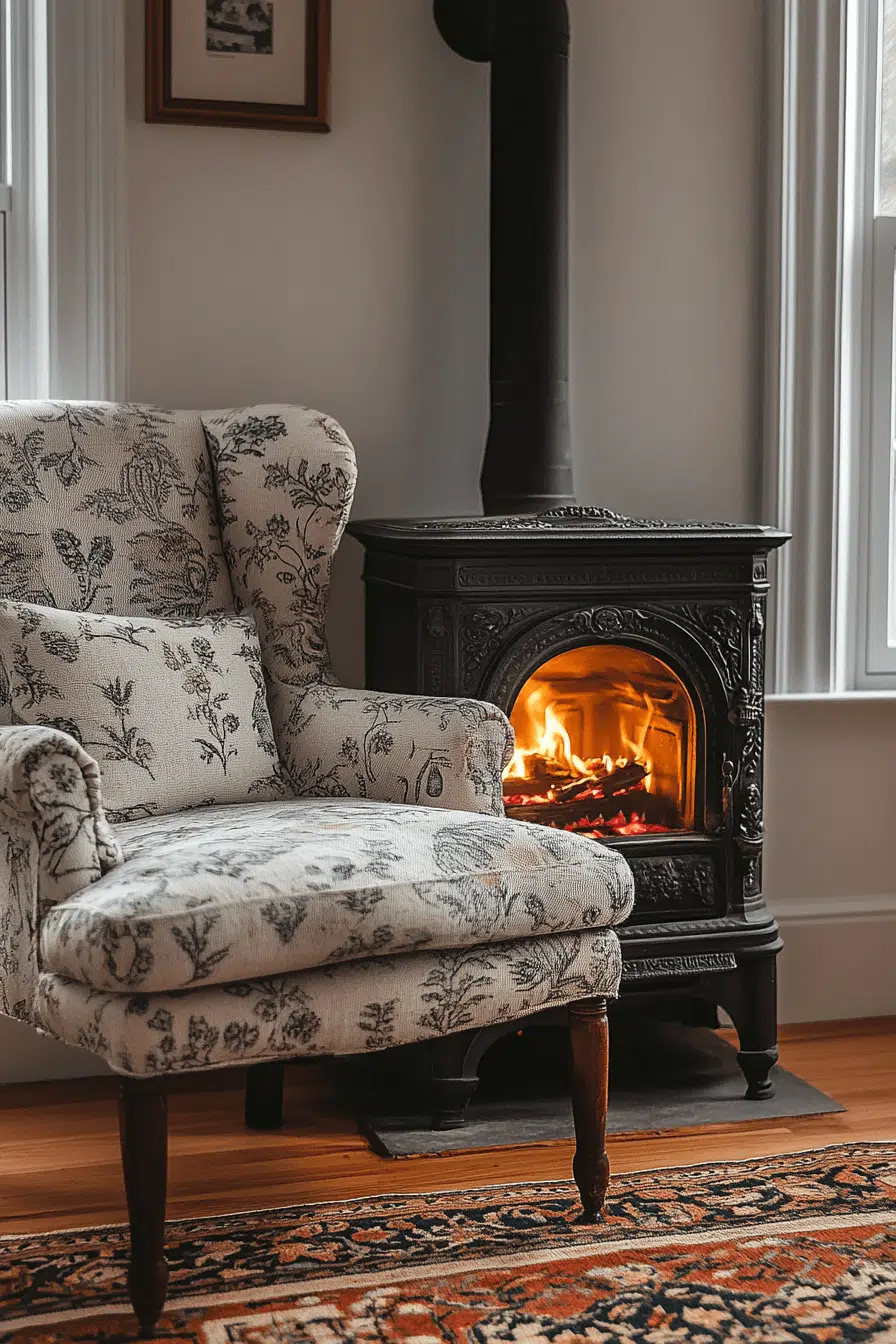 Cast iron fireplaces bring understated charm and reliable warmth. Their classic form works beautifully in both modern and traditional settings. Iron retains heat efficiently, making it as practical as it is attractive. The look feels sturdy, simple, and timeless. Among functional fireplace interior ideas, cast iron remains a favorite.