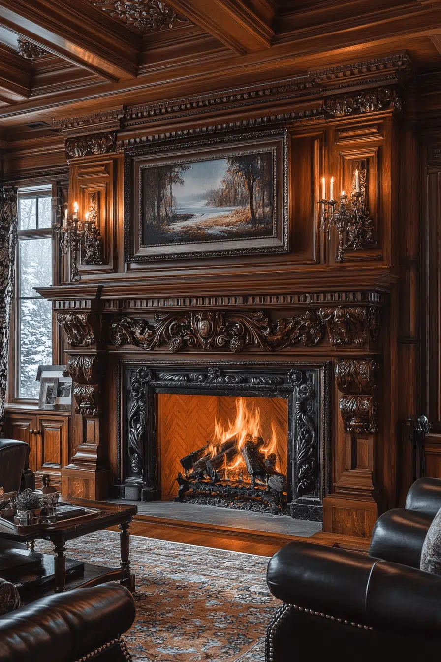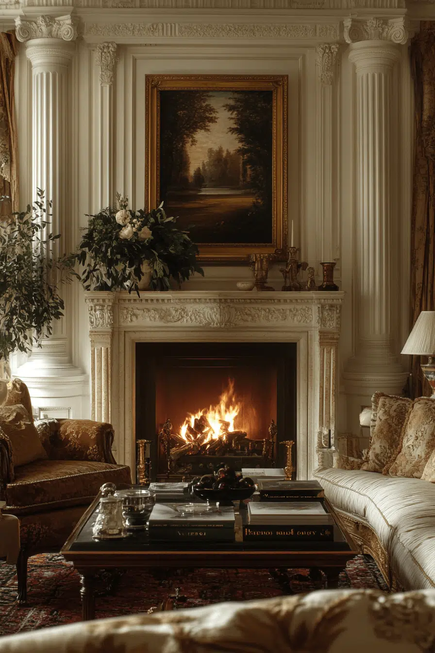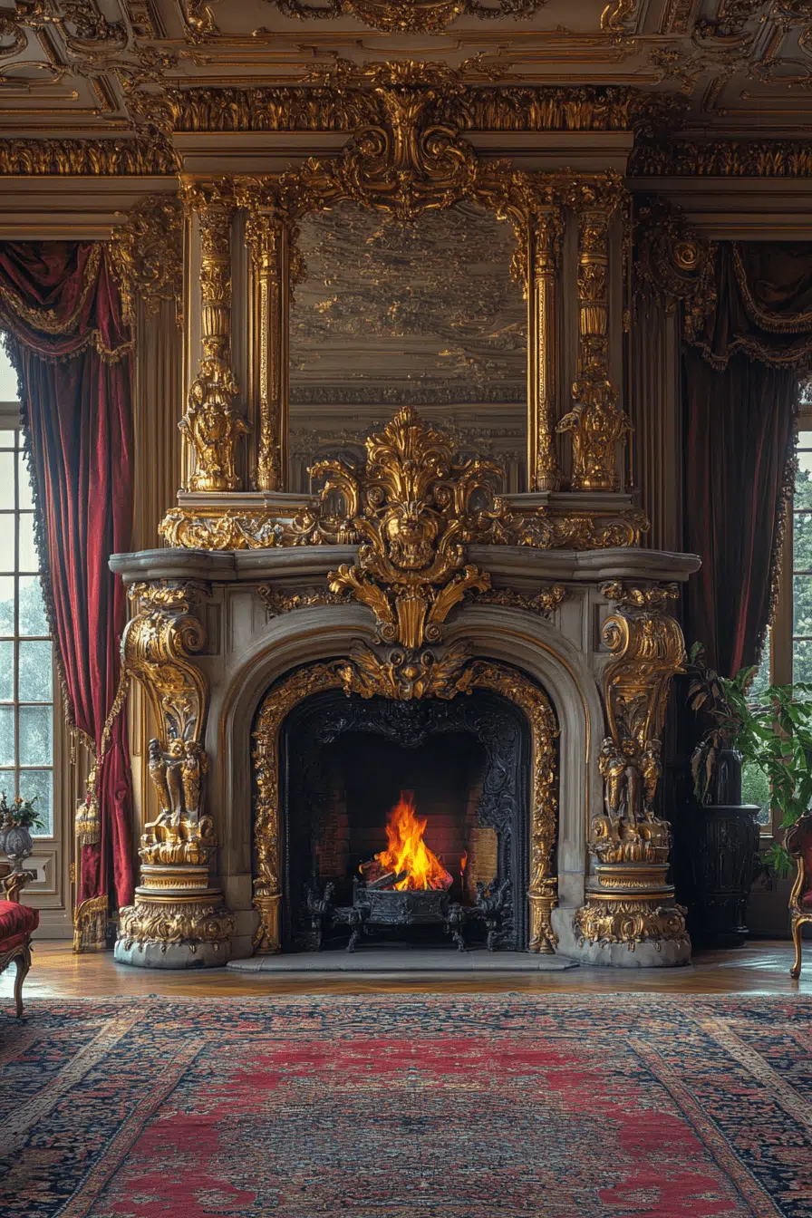Ornate baroque fireplaces create dramatic elegance with rich detailing. Sculpted accents and decorative elements turn the hearth into a work of art. This bold style thrives in spacious rooms that celebrate grandeur. Among statement fireplace interior ideas, baroque designs command attention. The result feels luxurious and unforgettable.