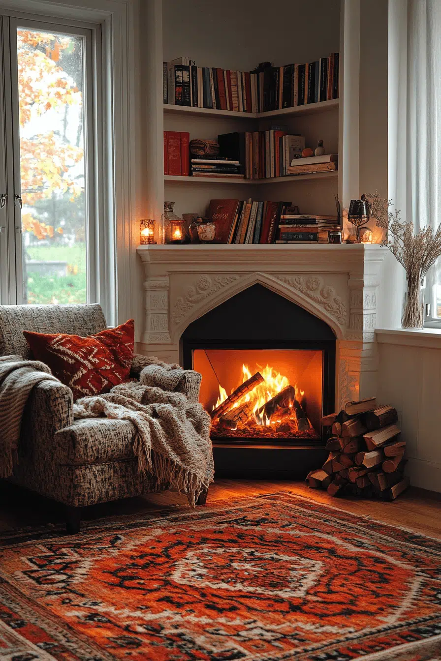Tucking a fireplace into a corner creates both charm and efficiency in your layout. This clever design keeps the room balanced while maximizing usable space. It’s especially suited for smaller rooms or intimate settings. With endless style options, it adapts easily to different aesthetics. Corner layouts remain popular fireplace interior ideas for functional living.