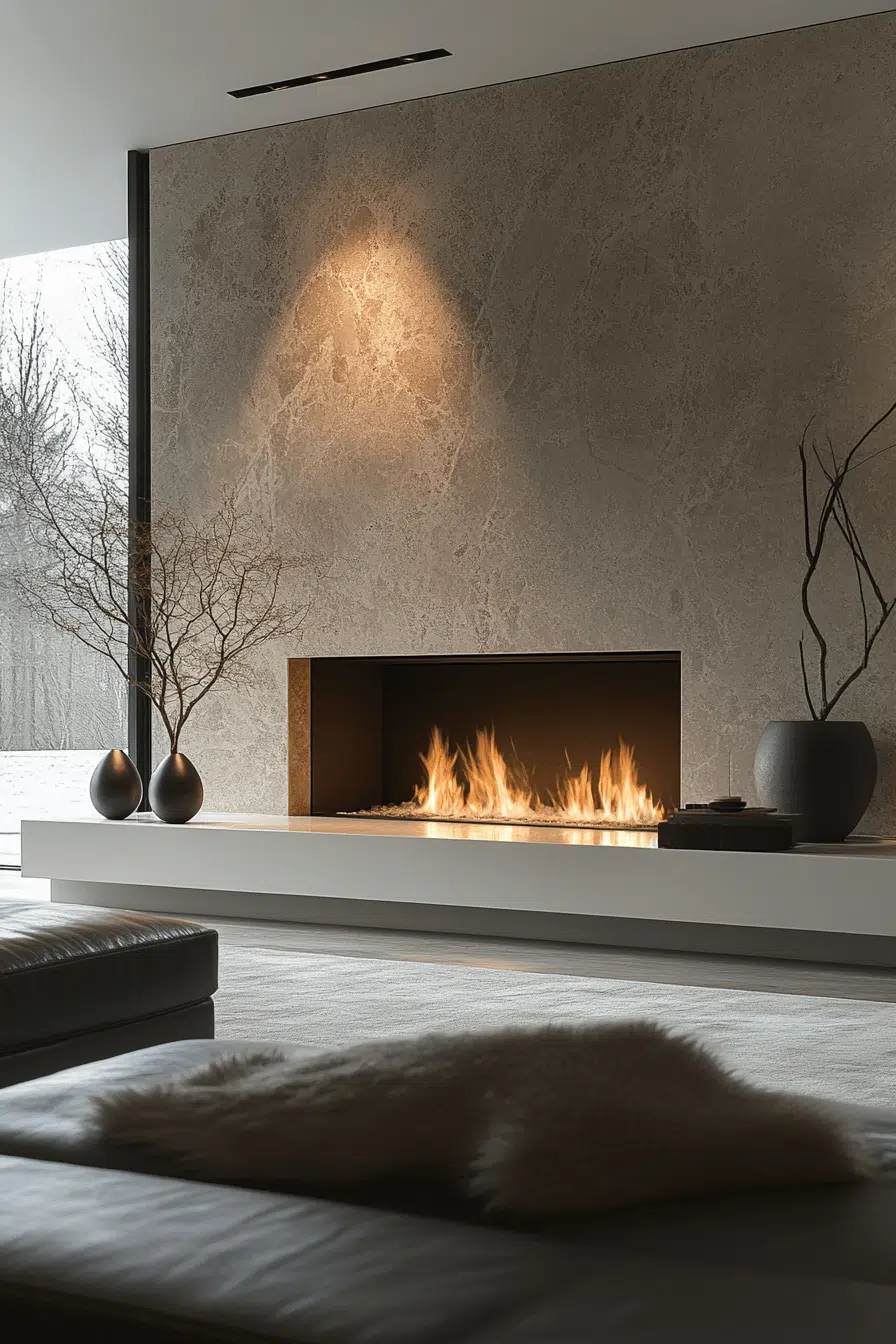 Asian-inspired fireplaces focus on balance, nature, and simplicity. Earthy materials and clean lines create a calming presence. The design encourages mindfulness and serenity. These fireplaces work beautifully in minimalist spaces. Among tranquil fireplace interior ideas, this style feels deeply restorative.