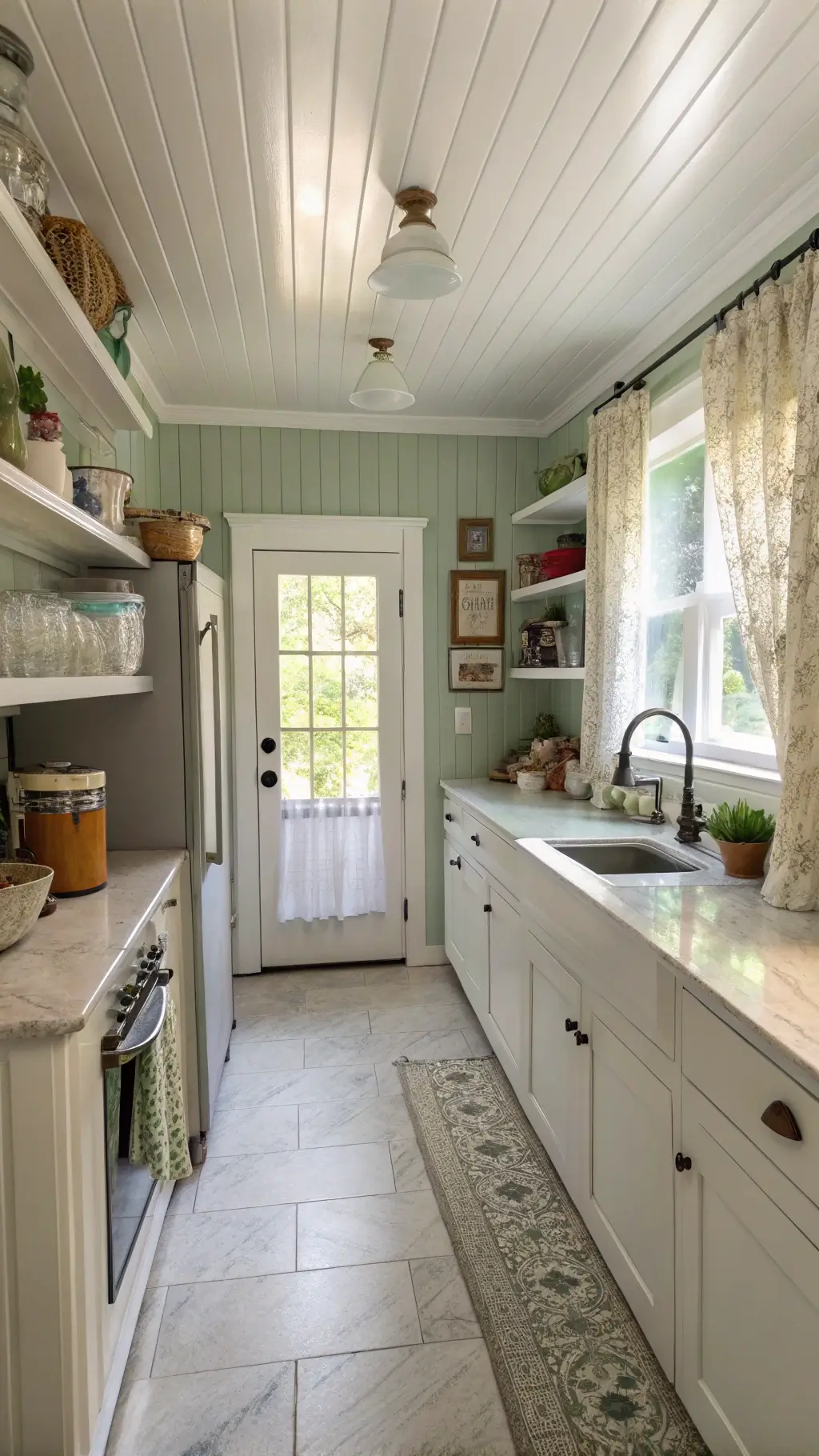 White shaker cabinets are the rockstars here. But not just any white—we’re talking about that soft, slightly distressed white that looks like it’s been loved for generations.