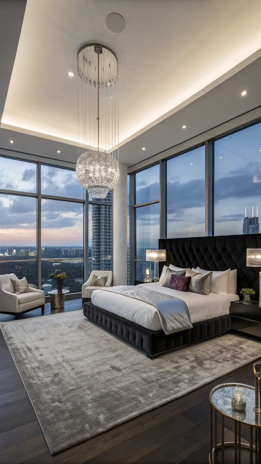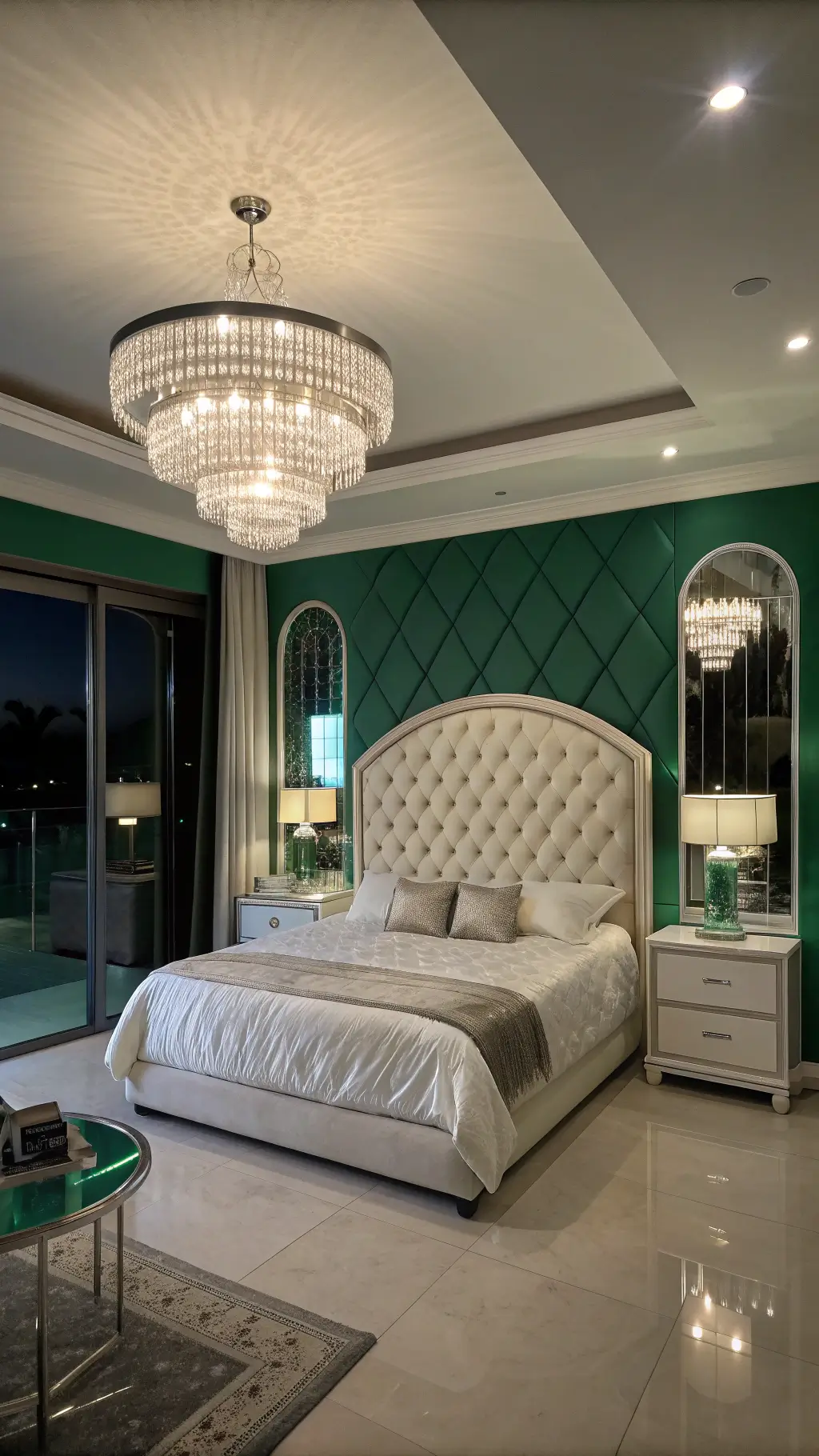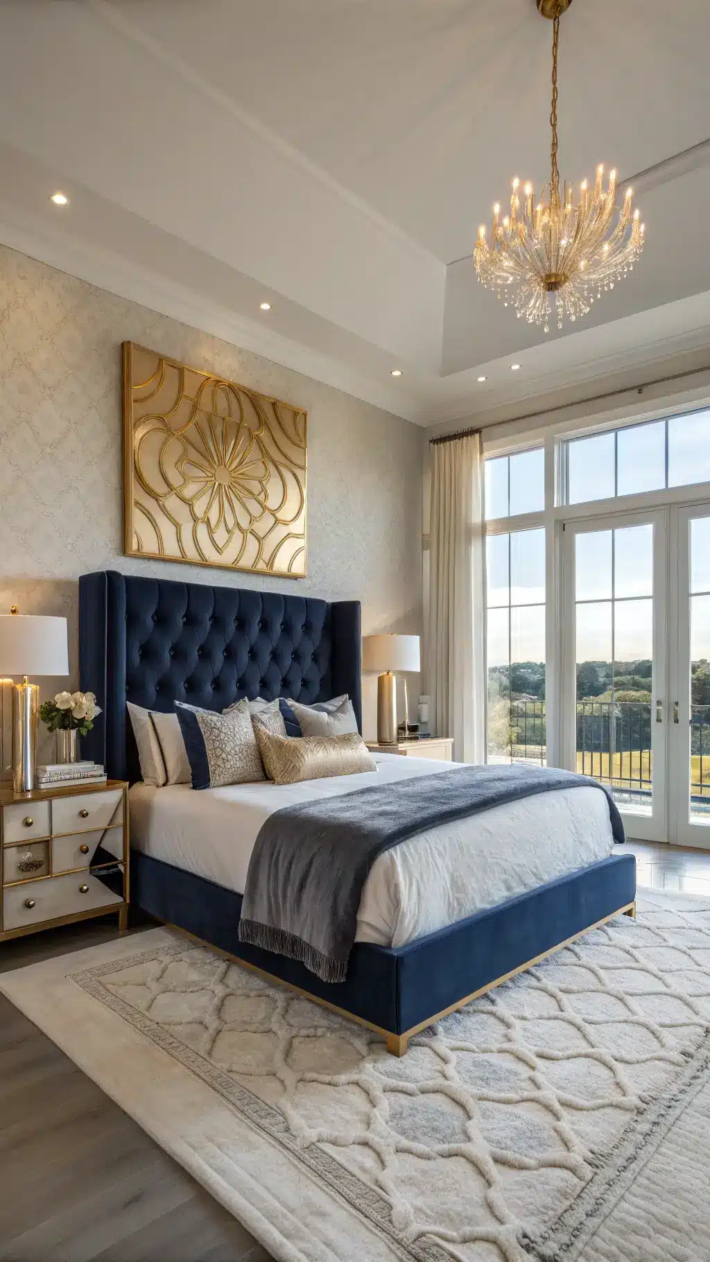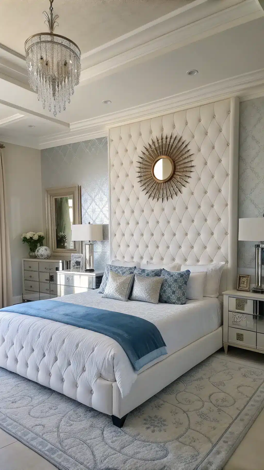 - Statement Headboard: Think tufted velvet headboard that screams luxury