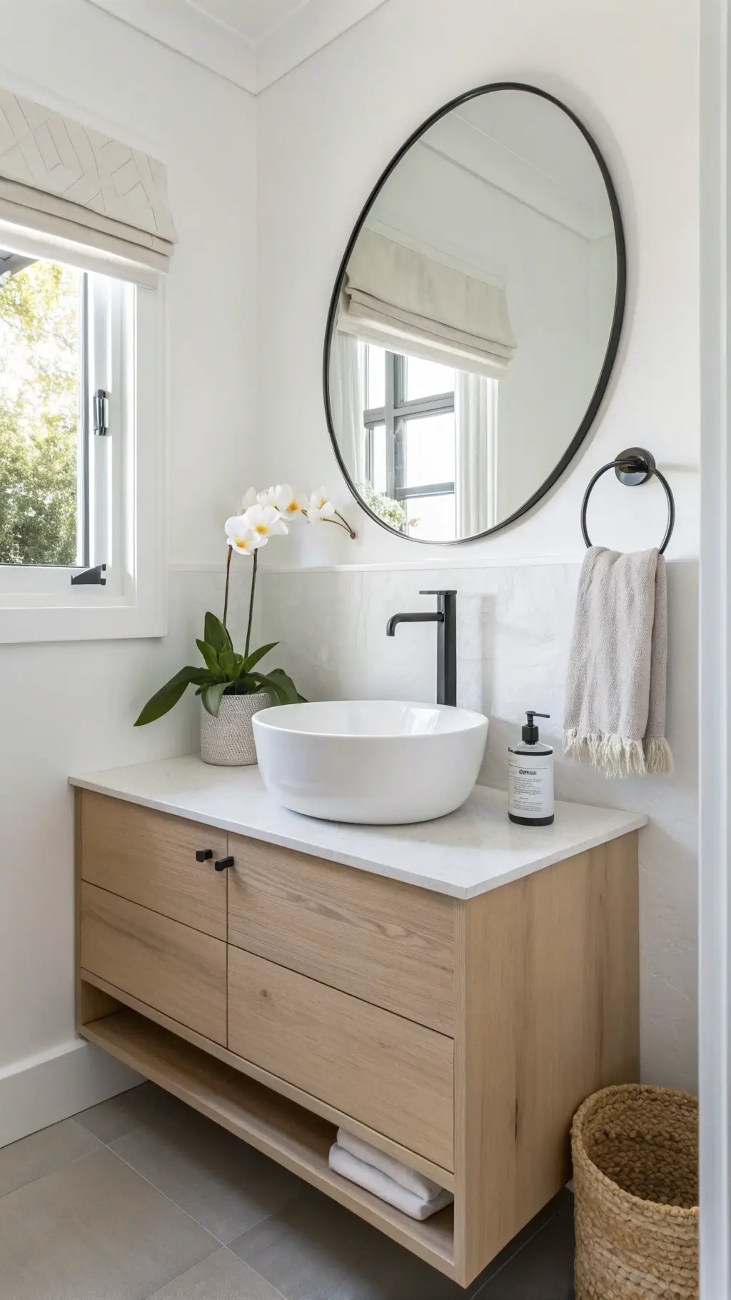 I cannot stress this enough—bad lighting will ruin even the best design. I replaced it with brass wall sconces on either side of the mirror, and suddenly people stopped looking gray and tired in there.