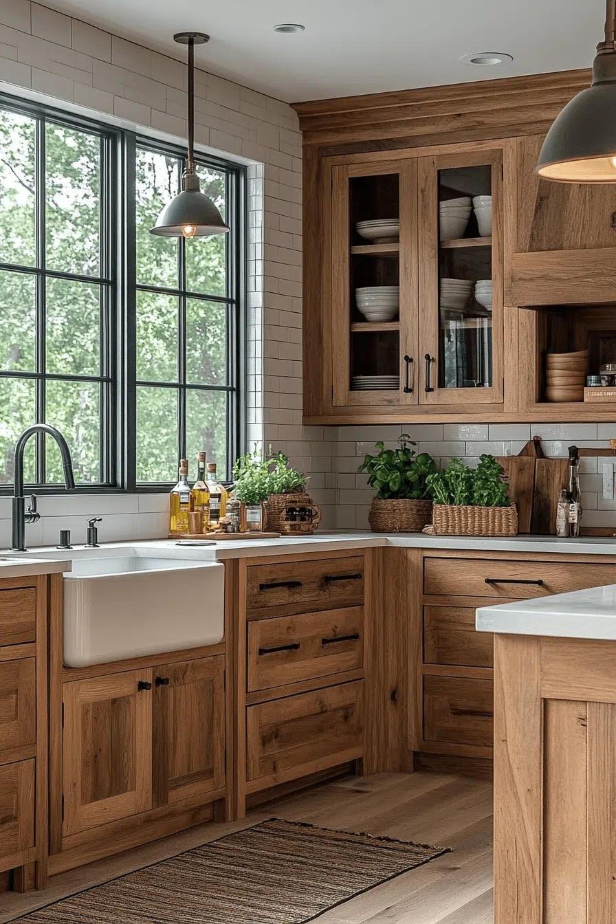 14. Farmhouse Hickory Cabinet Look