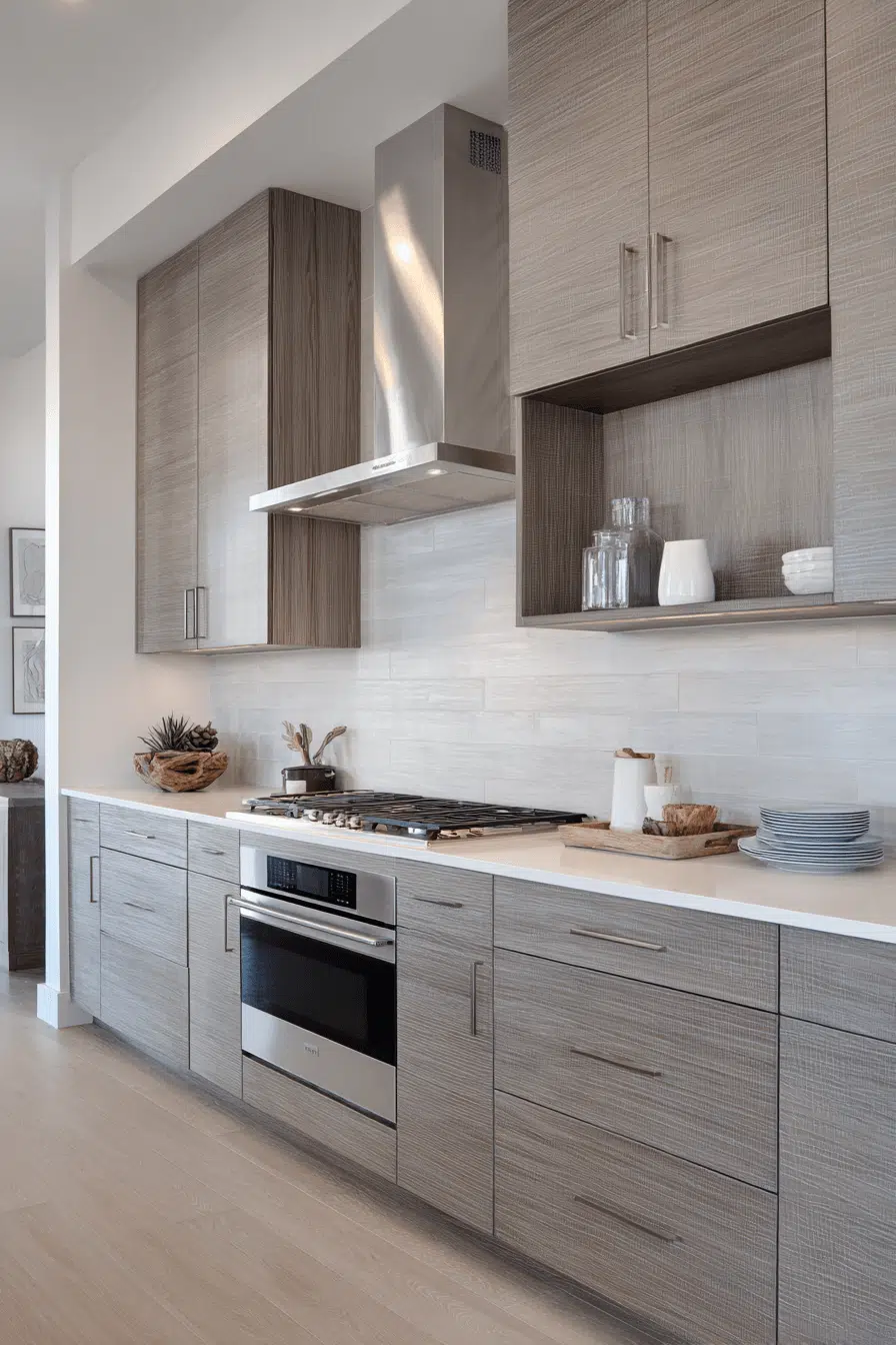Horizontal grain layouts give hickory kitchen cabinets a sleek and modern feel. The continuous lines create visual flow across the space. This design can make kitchens feel wider and more open. Flat fronts enhance the streamlined look. These hickory kitchen cabinets feel both structured and organic. Discover horizontal grain inspiration.