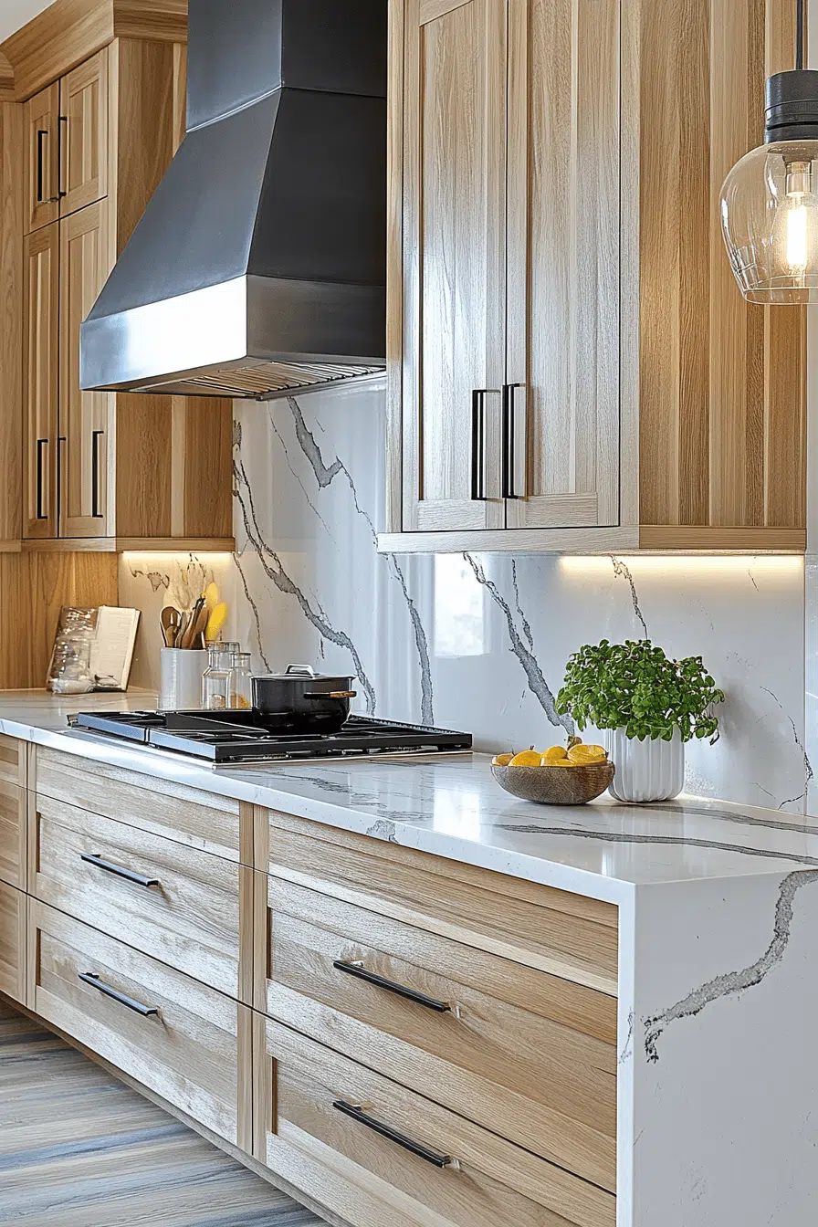 Pairing hickory kitchen cabinets with marble creates a stunning contrast. The smooth stone balances the bold wood grain. This combination feels both elegant and grounded. It works well in both modern and traditional kitchens. These hickory kitchen cabinets soften the look of marble beautifully. Discover this timeless pairing.