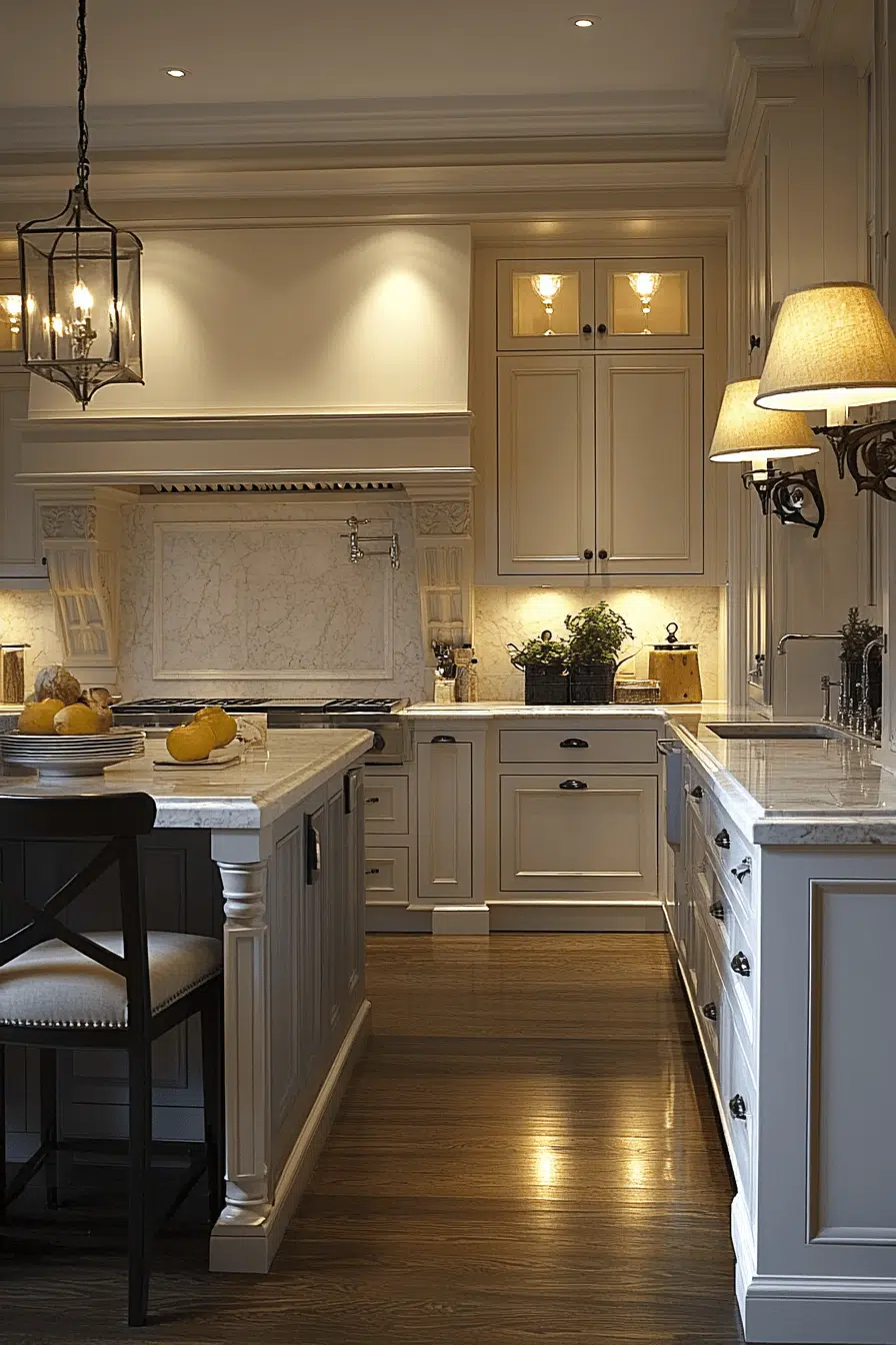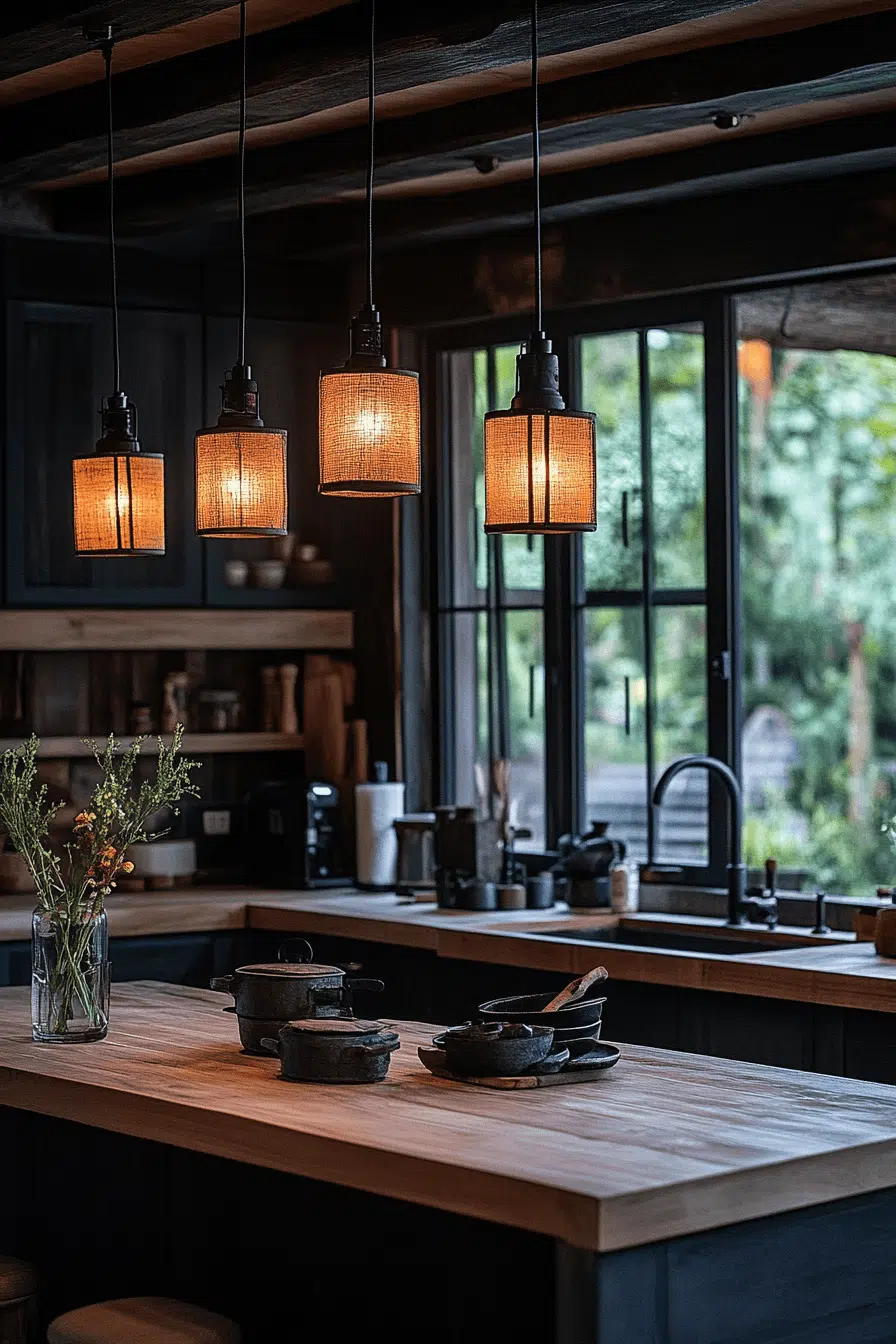 Lantern-style fixtures add rustic warmth to charming kitchen lighting ideas. Their soft glow creates a welcoming, cozy atmosphere. These kitchen lighting ideas often feature wood or metal for authentic character. Placed above islands or tables, they blend beauty with function. The space feels timeless and inviting. Add rustic charm with kitchen lighting ideas that glow with warmth!