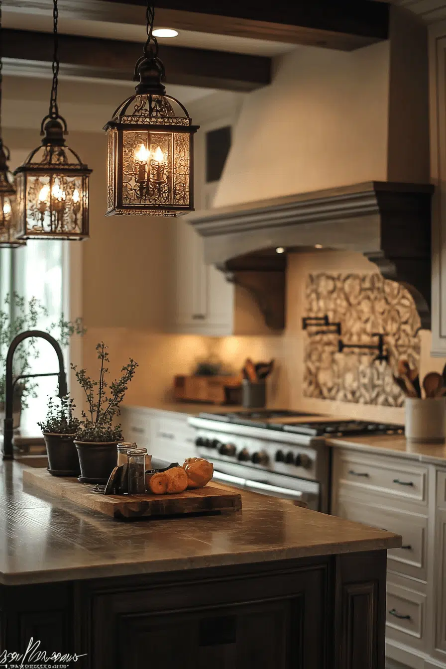 12. Rustic Lantern Kitchen Lighting