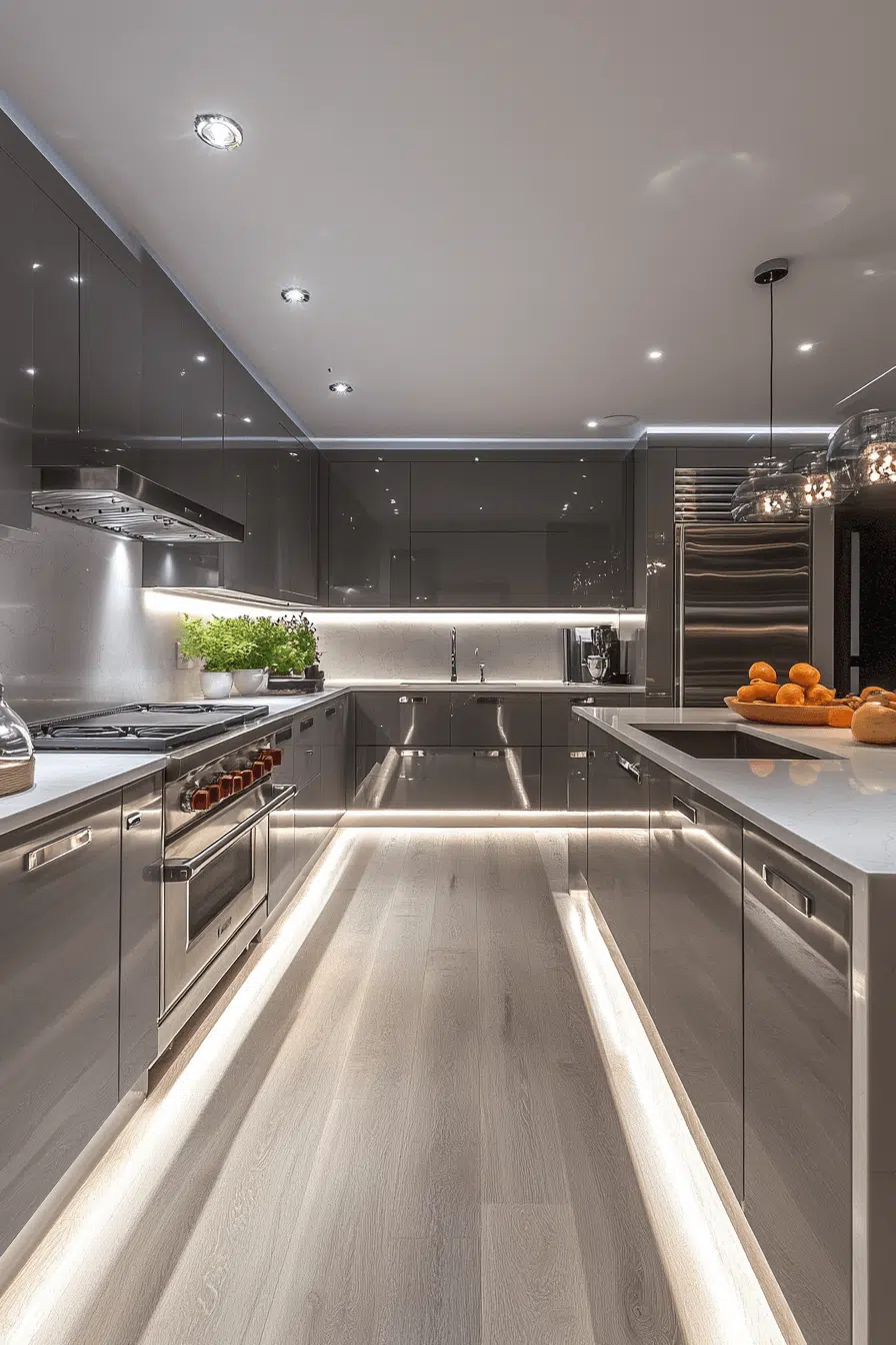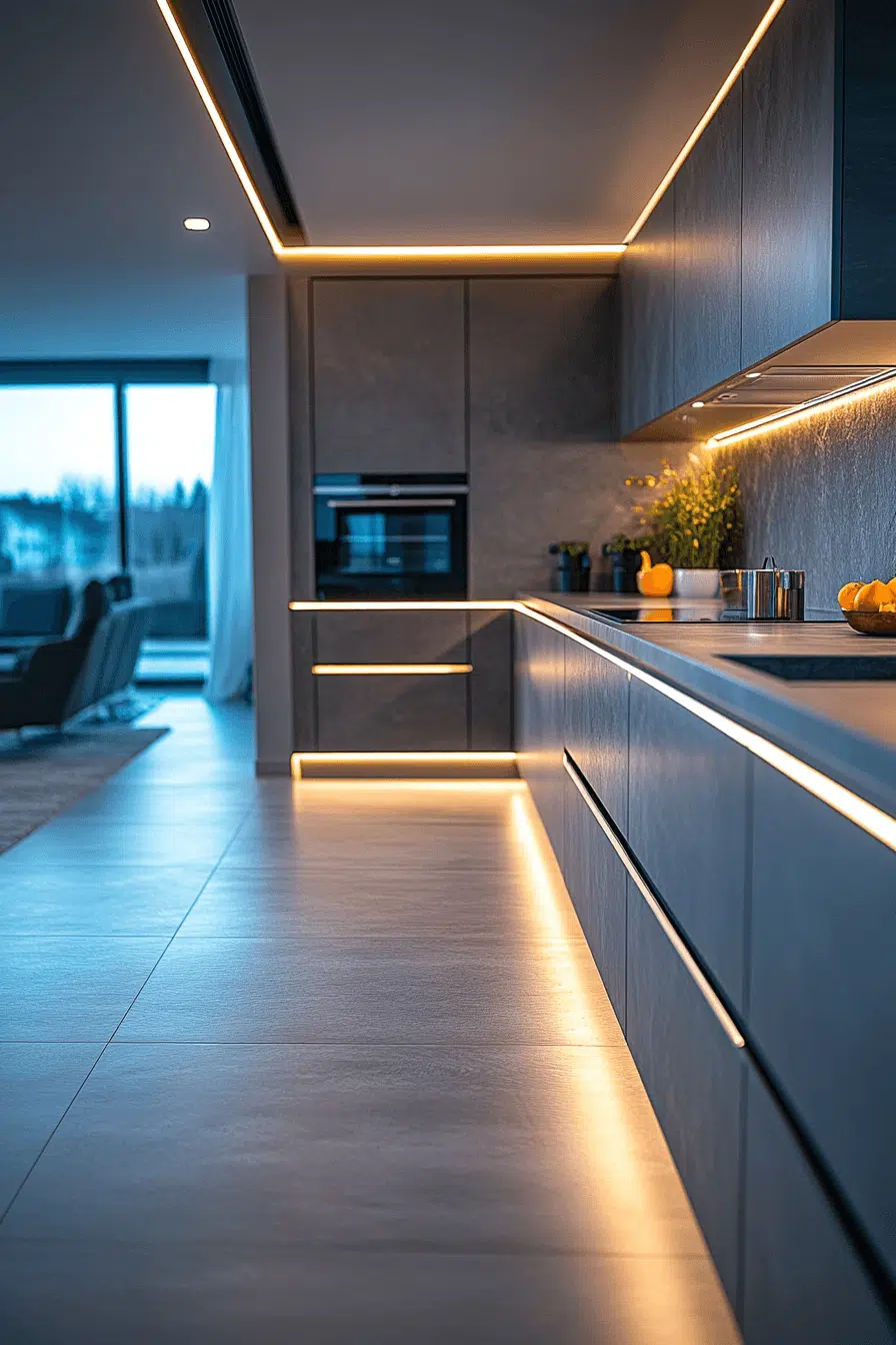 Integrated LED systems represent the future of modern kitchen lighting ideas. Built directly into cabinetry, they create seamless illumination. These kitchen lighting ideas eliminate visible fixtures for a clean look. They provide bright, energy-efficient lighting for daily use. The design feels sleek and innovative. Upgrade your kitchen with kitchen lighting ideas that feel effortlessly modern!