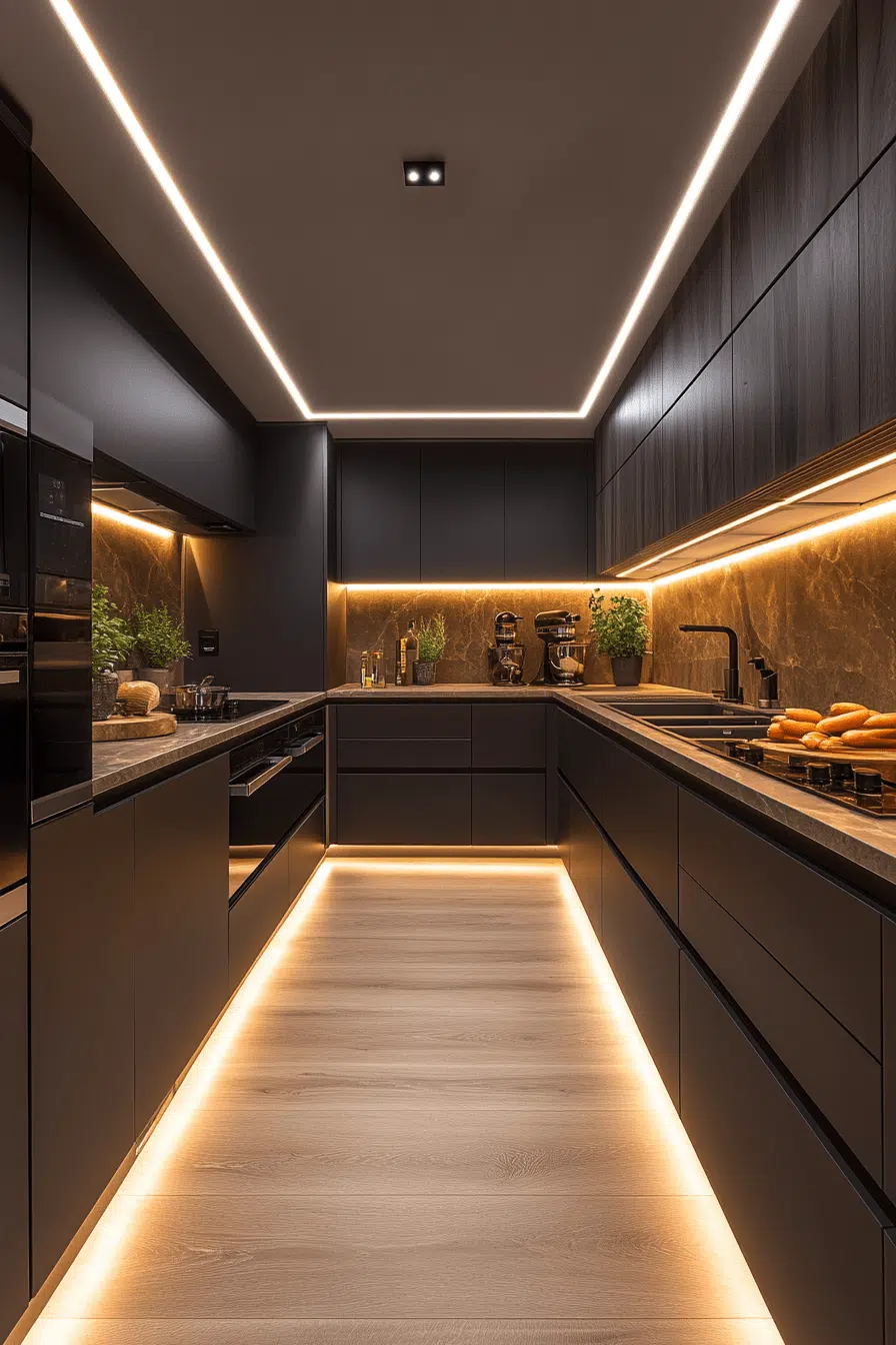 Integrated LED systems represent the future of modern kitchen lighting ideas. Built directly into cabinetry, they create seamless illumination. These kitchen lighting ideas eliminate visible fixtures for a clean look. They provide bright, energy-efficient lighting for daily use. The design feels sleek and innovative. Upgrade your kitchen with kitchen lighting ideas that feel effortlessly modern!