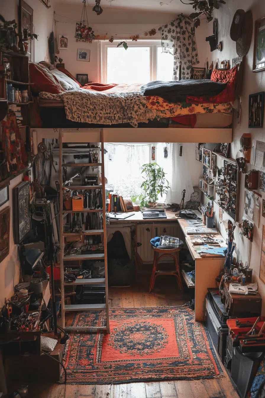 Creative loft beds for small rooms support productivity without sacrificing sleep. The raised bed separates rest from work zones below. Built-in desks and shelves keep projects organized. Lighting is thoughtfully placed for focus and inspiration. It’s a smart solution for creatives in compact homes.