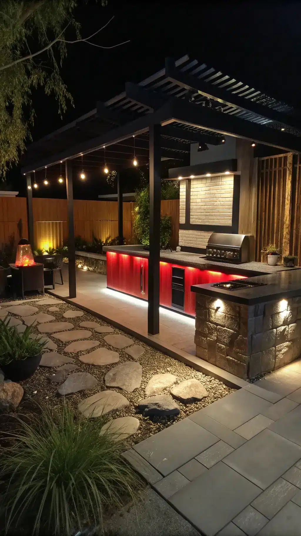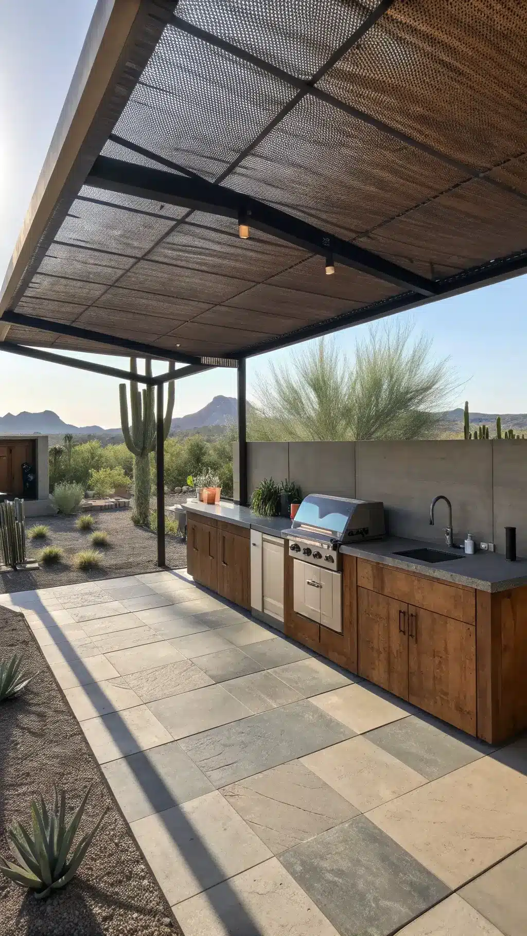 Pro tip: Mix materials like a boss. Think stainless steel appliances, weatherproof stone, and sexy teak accents.